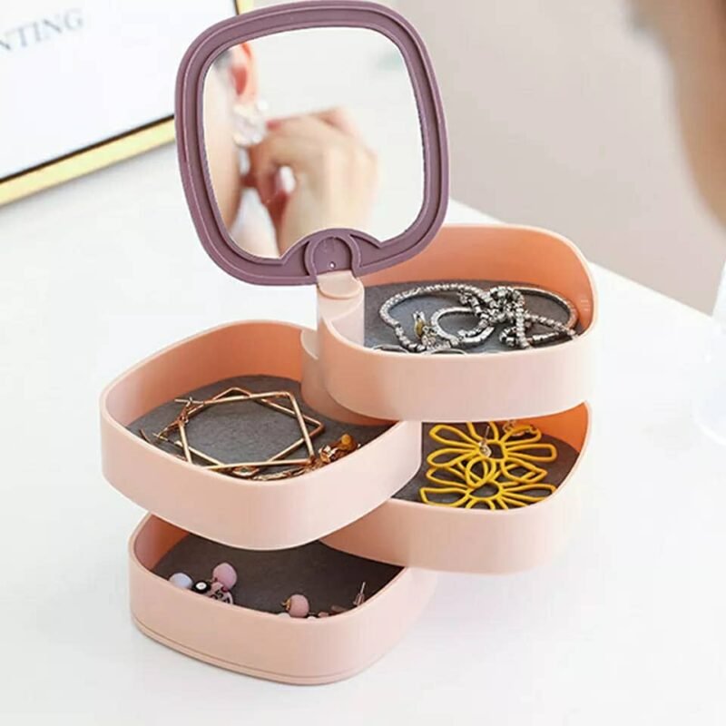 boîte de rangement pour bijoux multi-couches avec mirroir
