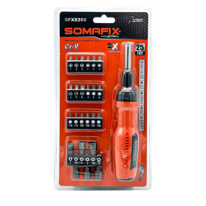 مطقم مفك براغي من 25 قطعة – Tournevis Cliquet SOMAFIX SFX5358 Coffret 25 Pièces en Acier Cr-V