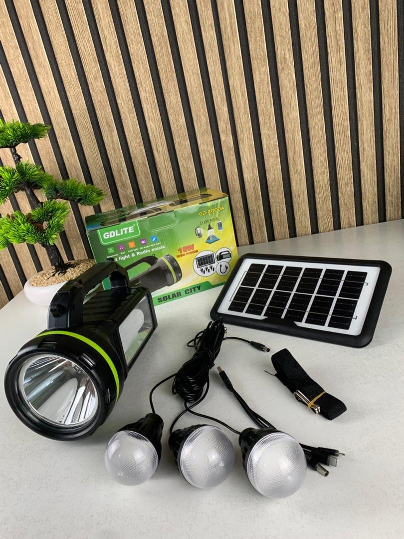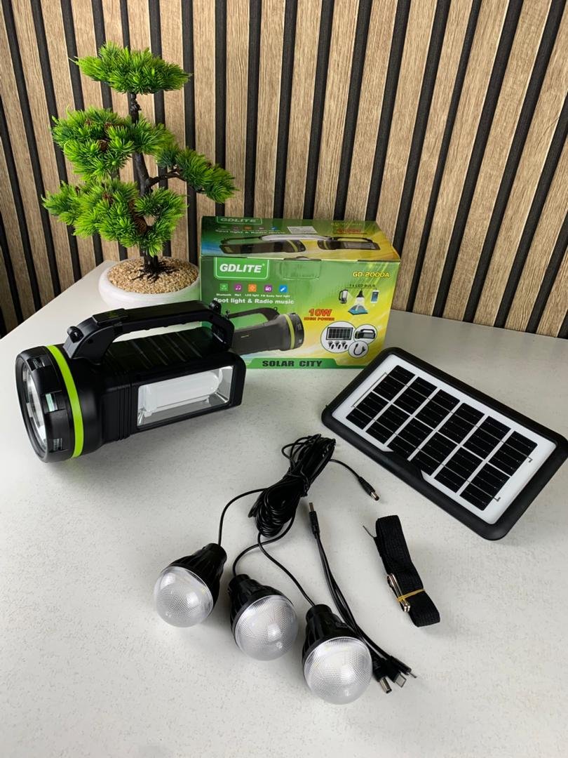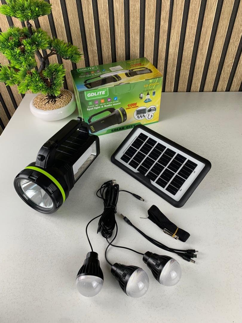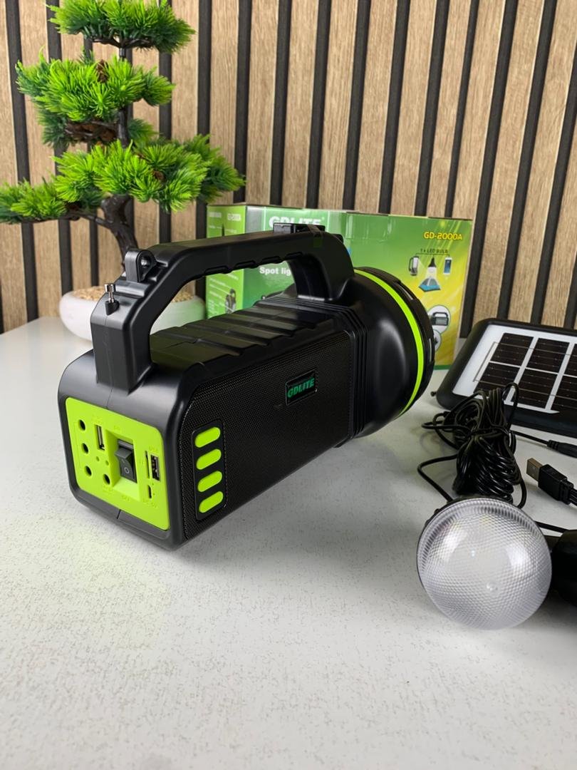 🔆 محطة الطاقة الشمسية GDLITE GD-2000A – الإنارة الذاتية المتنقلةمحطة GDLITE GD-2000A هي حلّ متكامل للإنارة بالطاقة الشمسية، مثالية للمناطق اللي ما فيهاش كهرباء، للتخييم، للسفر، ولحالات الطوارئ. تجمع ما بين لوح شمسي، بطارية قوية، لمبات LED، منافذ USB، وراديو وموسيقى… كامل في جهاز واحد صغير وسهل النقل.تقدّر تستعملها في الدار وقت انقطاع الكهرباء، في الرحلات، في الفلاحة، ولا حتى كمصدر طاقة احتياطي. تصميمها قوي ومتين، وتخدم ساعات طويلة بلا أي مشكل.✨ أهم المميزات🔋 بطارية قوية 9000mAhبطارية قابلة للشحن (6V)تدوم ساعات طويلة حسب الاستعمالشحن بالطاقة الشمسية أو بالكهرباء 220V🌞 لوح شمسي 6V مرفقيشحن الجهاز نهار كاملطاقة اقتصادية وموثوقةمناسب للمناطق الريفية والبرية💡 إنارة متعددة وقوية3 لمبات LED SMD مع كابل طويلسبوت لايت 10W قوي للمسافات البعيدةلمبة LED على شكل U لإضاءة الغرف🎵 وظائف متعددة في جهاز واحدراديو FM/AMقارئ موسيقى USB / Carte TFمكبّر صوت Bluetoothيشغل الأغاني مباشرة من الهاتف أو USB🔌 منافس USB للشحنتشحن الهاتف، الساعات الذكية، السماعات…خرج 5V يناسب كامل الأجهزة الصغيرة🔦 مصباح يدوي مدمجضوء قوي وسهل الاستعمالمفيد للطوارئ أو المشي بالليل🚚 سهل الحمل وخفيفتصميم قوي ومتينمقبض مريح وسهل النقل لأي مكان📊 المواصفات التقنيةالطراز : GDLITE GD-2000Aالبطارية : 9000mAh (6V) – حسب الإصدار (رصاص أو Li-ion)الطاقة الشمسية : لوح 6V (3–7W)الإنارة :3 × لمبات LED SMDسبوت لايت 10Wلمبة LED شكل Uالصوت : راديو FM/AM – قارئ MP3 – Bluetoothالمداخل/المخارج :منافذ USB للشحن (5V)منافذ USB/TF لقراءة الموسيقىالشحن : طاقة شمسية / كهرباء 220Vالاستعمال : التخييم، الريف، الطوارئ، المنزل🌟 GDLITE GD-2000A… محطة طاقة متنقلة تخدمك وين ما تروح !