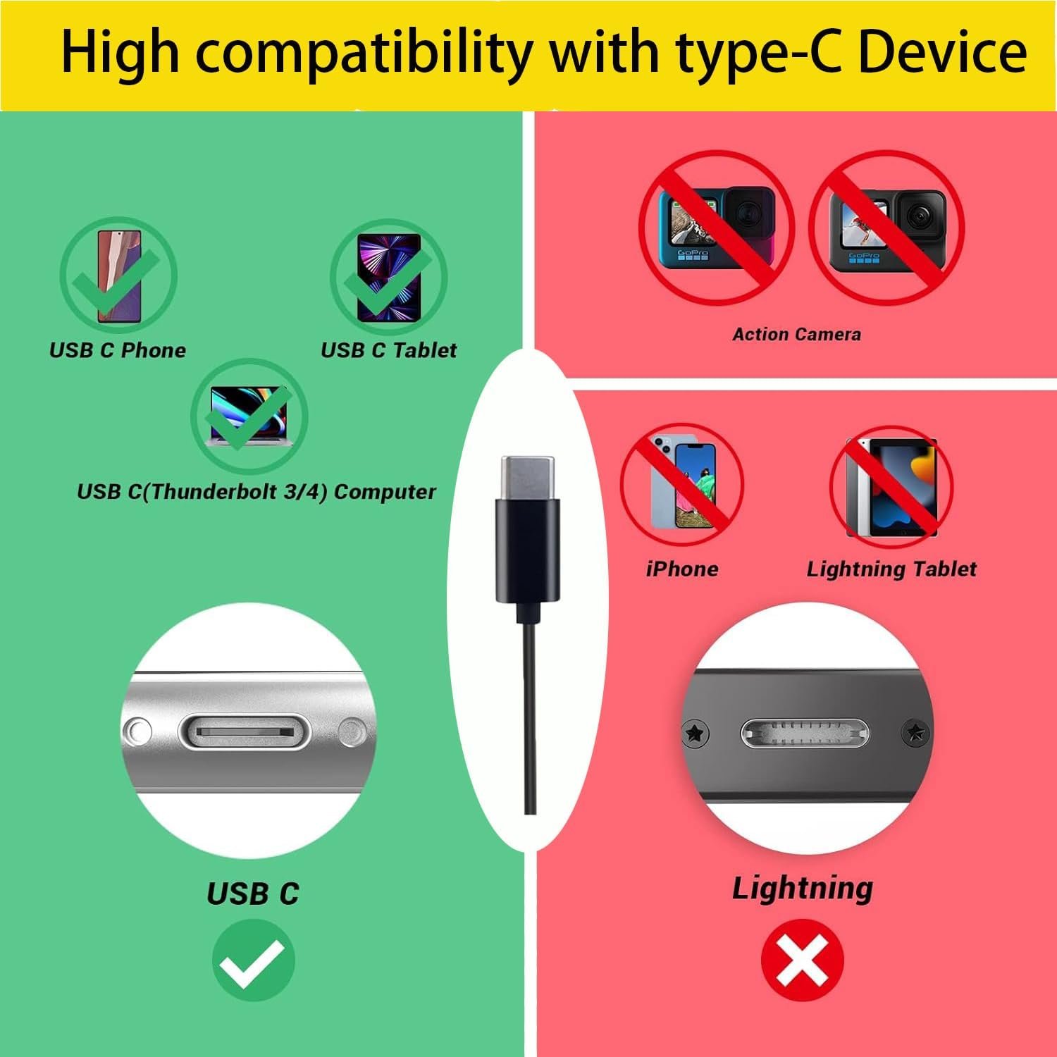 • توافق ذكي (USB-C): يعمل مباشرة مع جميع الهواتف والأجهزة اللوحية الحديثة المزودة بمنفذ Type-C (سامسونج، هواوي، آيباد برو، وغيرها) دون الحاجة لتعريفات.