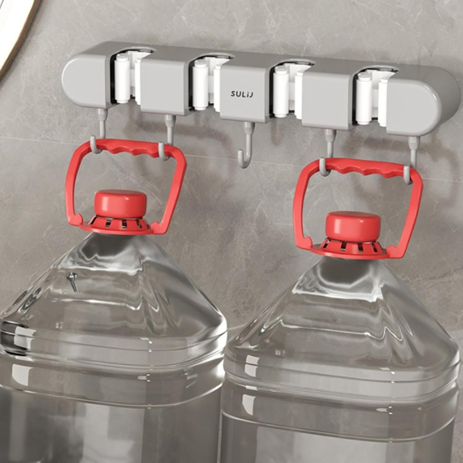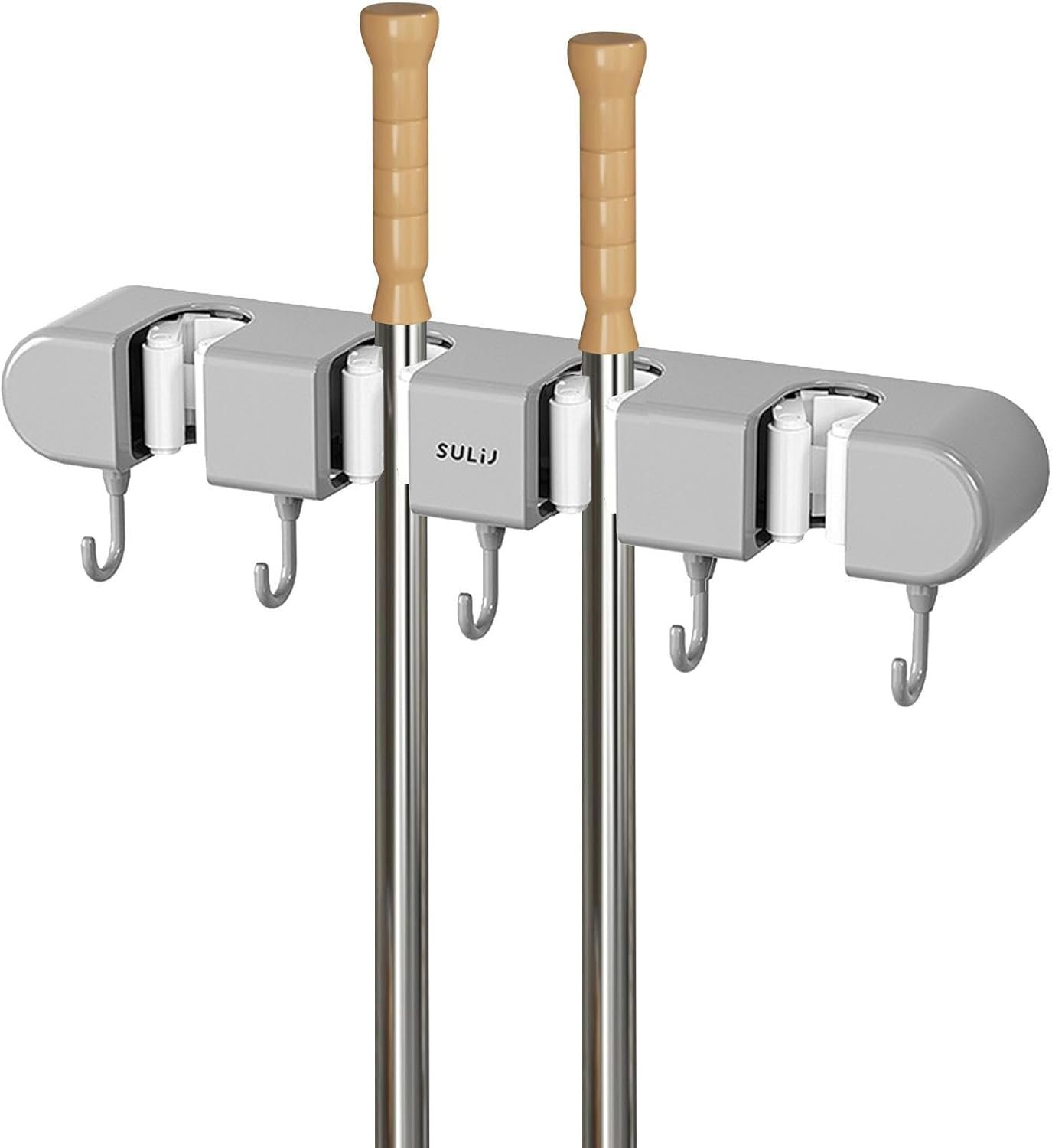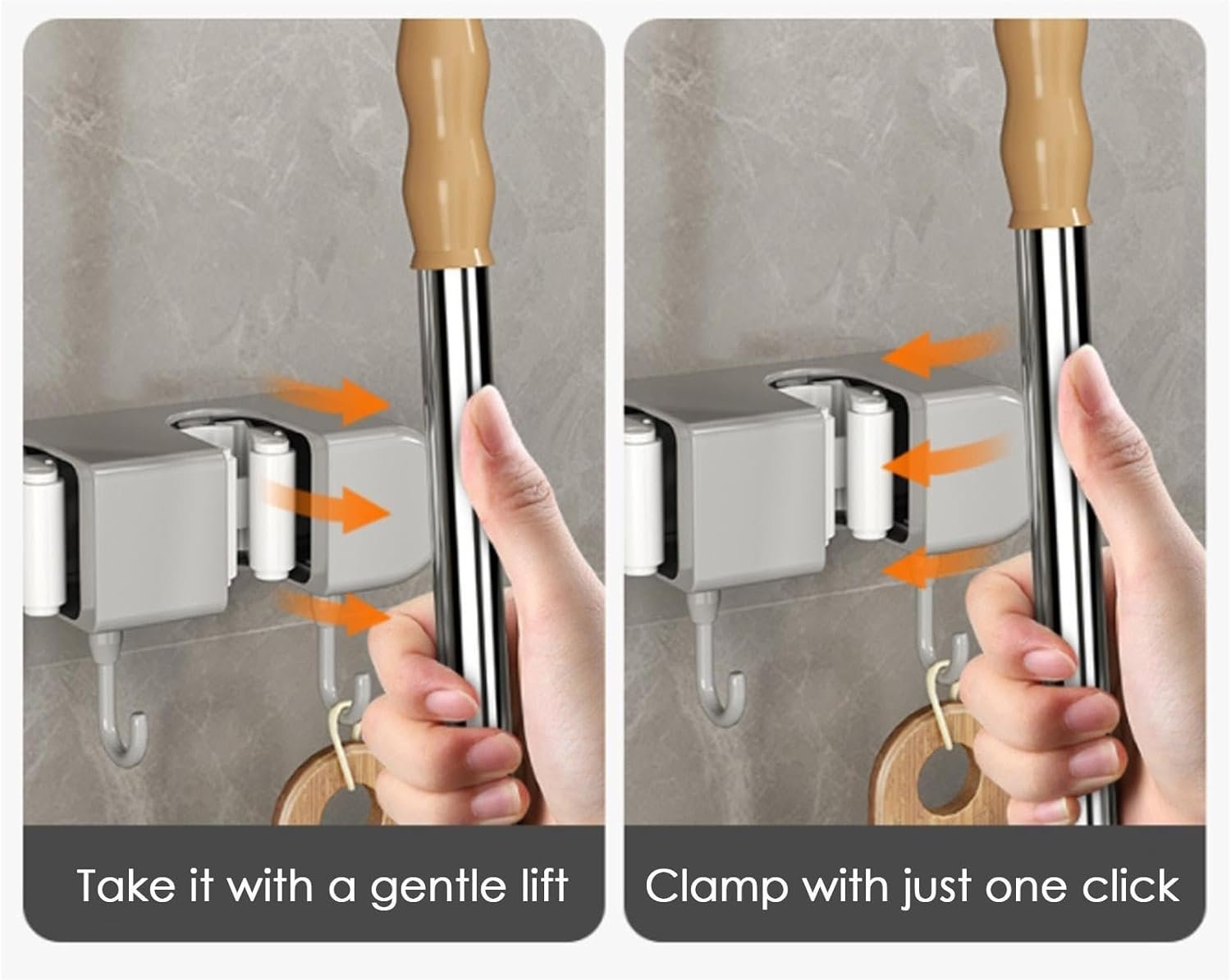 - سعة تخزين 9 في 1: مزود بـ 4 مقابض آلية للمكنسات و 5 خطافات عملية قابلة للطي لتعليق الفوط، المفاتيح، أو أدوات المطبخ الصغيرة.