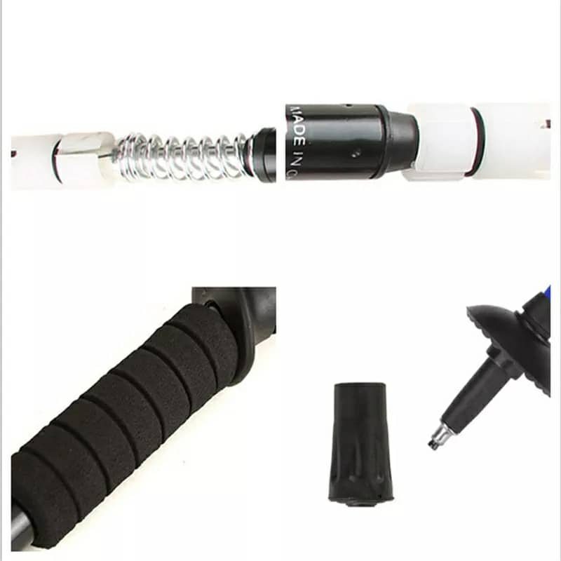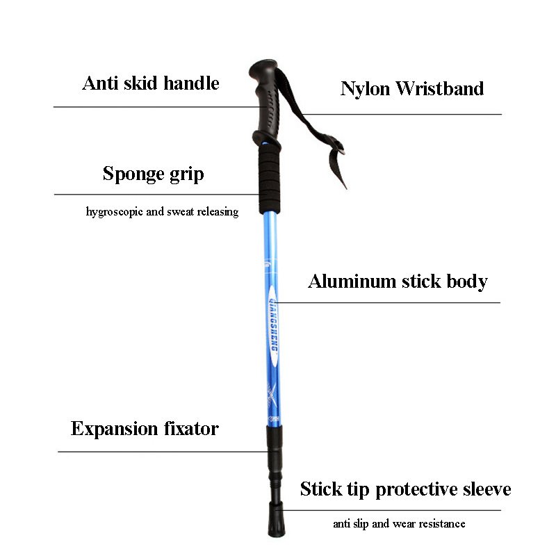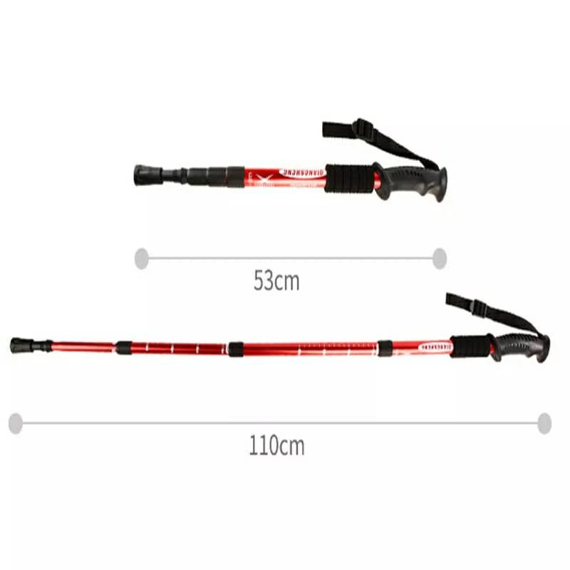 عصا المشي القابلة للتعديلالعلامة التجارية: Qiangshengالموديل: DS8002 / DS8004مادة العصا: سبائك الألومنيوماللون: أحمر / أزرقمادة المقبض: مطاطالوزن: حوالي 315 غراممادة طرف العصا: فولاذ التنغستنالطول:قصير: من 53 إلى 110 سمطويل: من 63 إلى 135 سمالاستخدام: مناسب للمشي، التسلق، التزلج