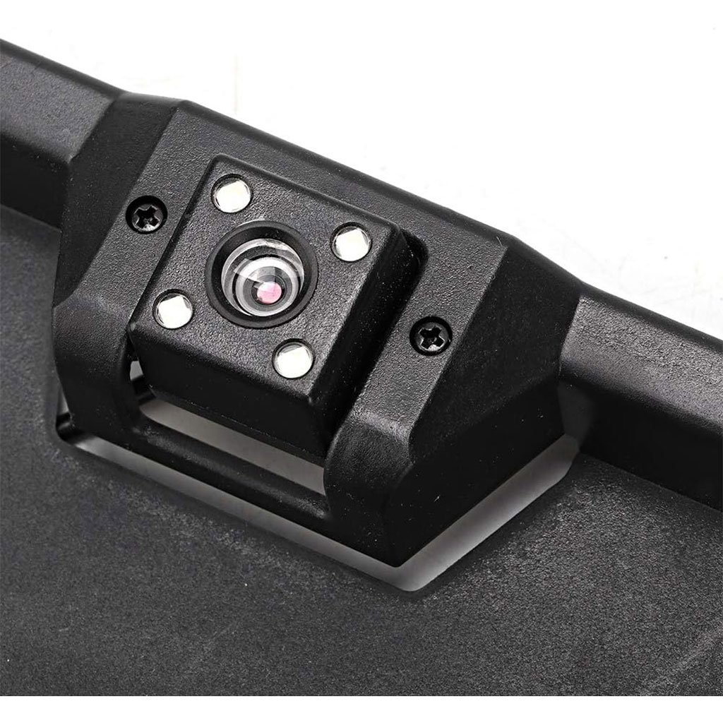 إطار لوحة أرقام مع كاميرا ورادارتقنية معالجة فيديو متطورة: تحسين جودة الصورة والألوان على الشاشات.رؤية ليلية قوية: كاميرا خلفية بـ12 LED تمنح وضوحًا ممتازًا في الظلام.رادار رجوع: مزود بحساسين لكشف العوائق عند الركن أو الرجوع للخلف.توافق واسع: يعمل مع جميع الشاشات المزودة بموصل RCA وأنظمة DVD.خامة عالية الجودة: مصنوع من ABS متين، سهل التركيب ومناسب للشاحنات والحافلات والسيارات.