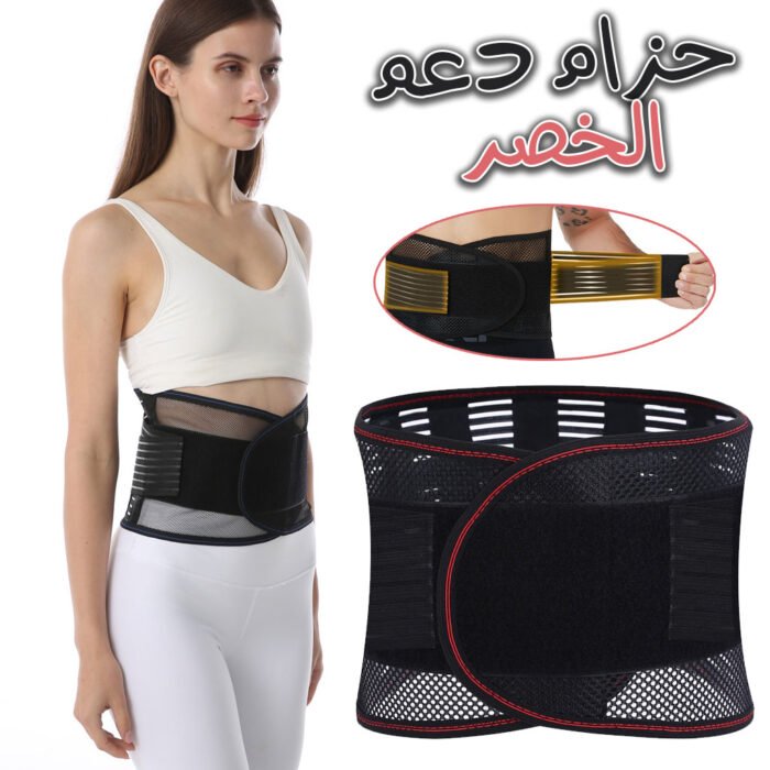 حزام داعم أسفل الظهر (مع 5 دعامات قوية)تخفيف الألم فورياً: يحتوي على 5 قضبان دعم تمنح ثباتاً عالياً 360° لتخفيف آلام أسفل الظهر الناتجة عن الانزلاق الغضروفي، التهاب المفاصل، عرق النسا أو غيرها.نسيج شبكي صيفي: تصميم مهوّى ومريح يسمح بارتداء الحزام طوال اليوم حتى أثناء الأعمال الشاقة.ضغط إضافي قابل للتعديل: الأشرطة المرنة تعزز الضغط لتقليل آلام الظهر أثناء الجلوس الطويل أو حمل الأشياء الثقيلة.ثبات مثالي: يمنع الحزام من الانزلاق عند الجلوس أو الانحناء، ويوفر استقراراً فائقاً.تصميم خفيف وناعم: مادة مرنة بأربع اتجاهات تعطي إحساساً كالحرير على البشرة عند ارتدائه تحت الملابس.