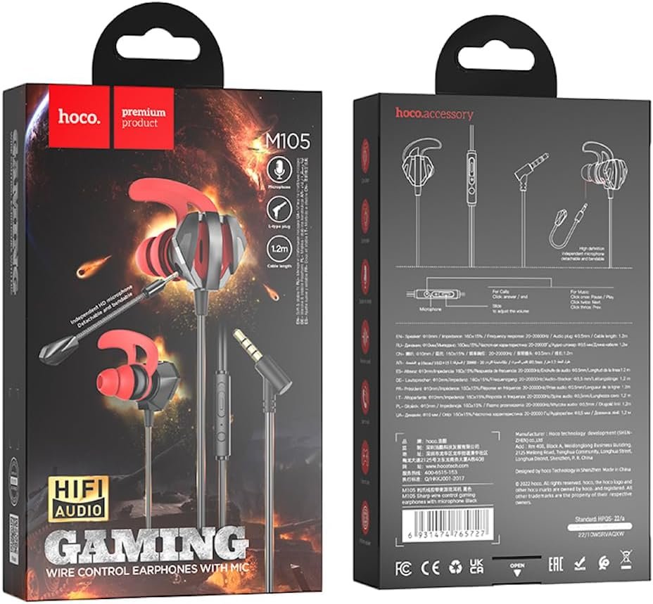 Écouteurs de jeu filaire intra-auriculaire avec microphone E-Sport Hoco M105 – سماعات ألعاب إحترافية مع ميكروفون