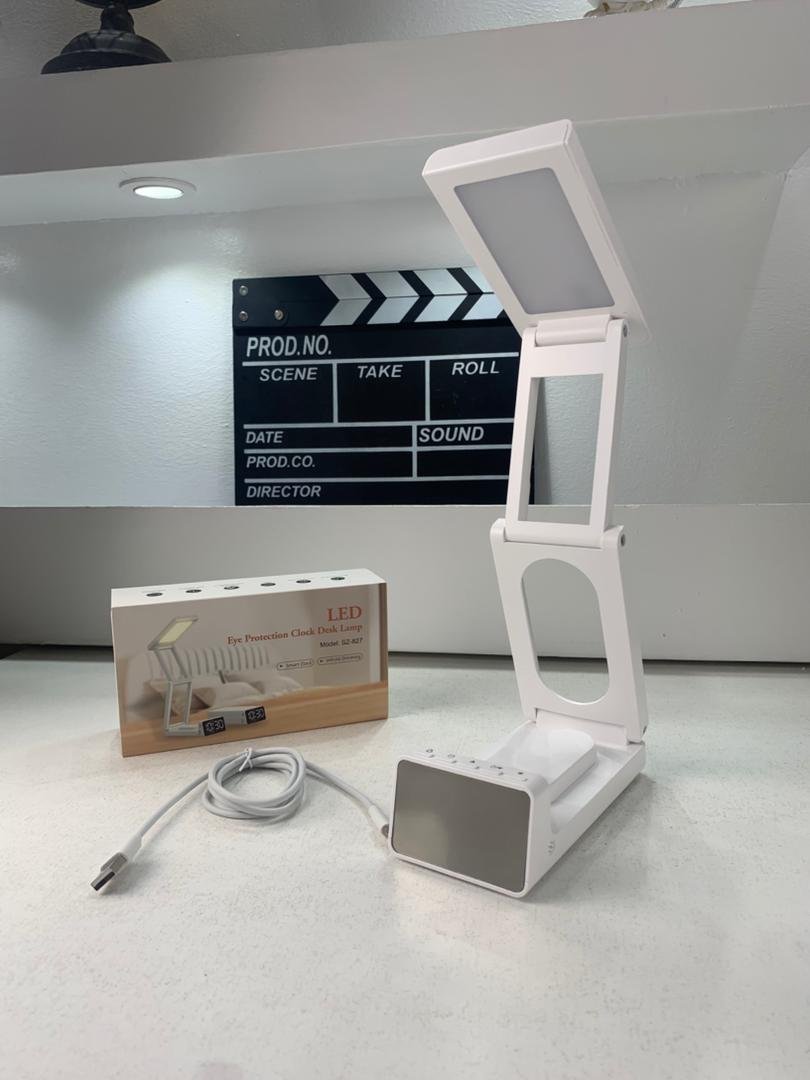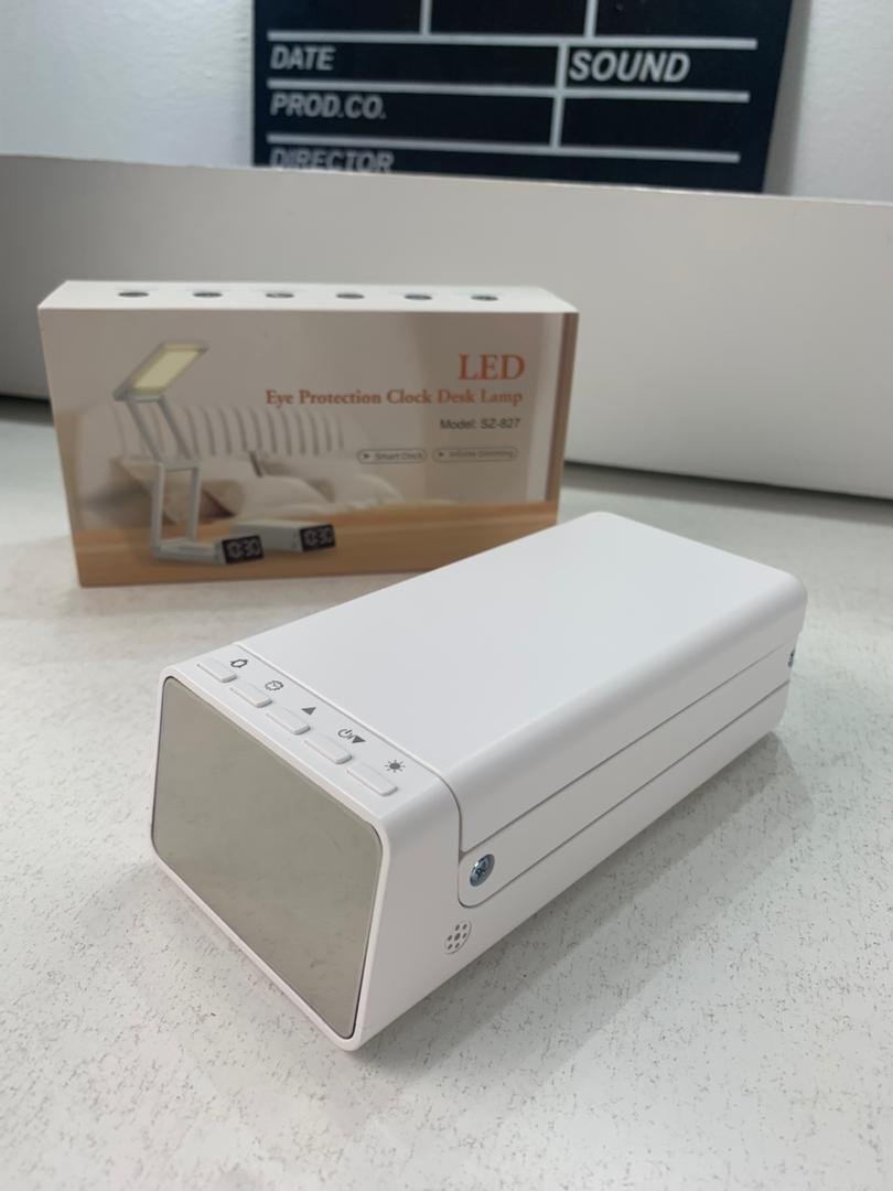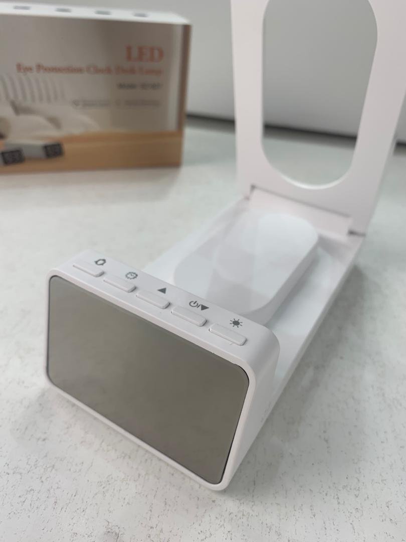 Lampe de bureau rechargeable sans fil avec réveil LED et power bank 10 000 mAh – مصباح مكتب ومصباح مع شاحن متنقل