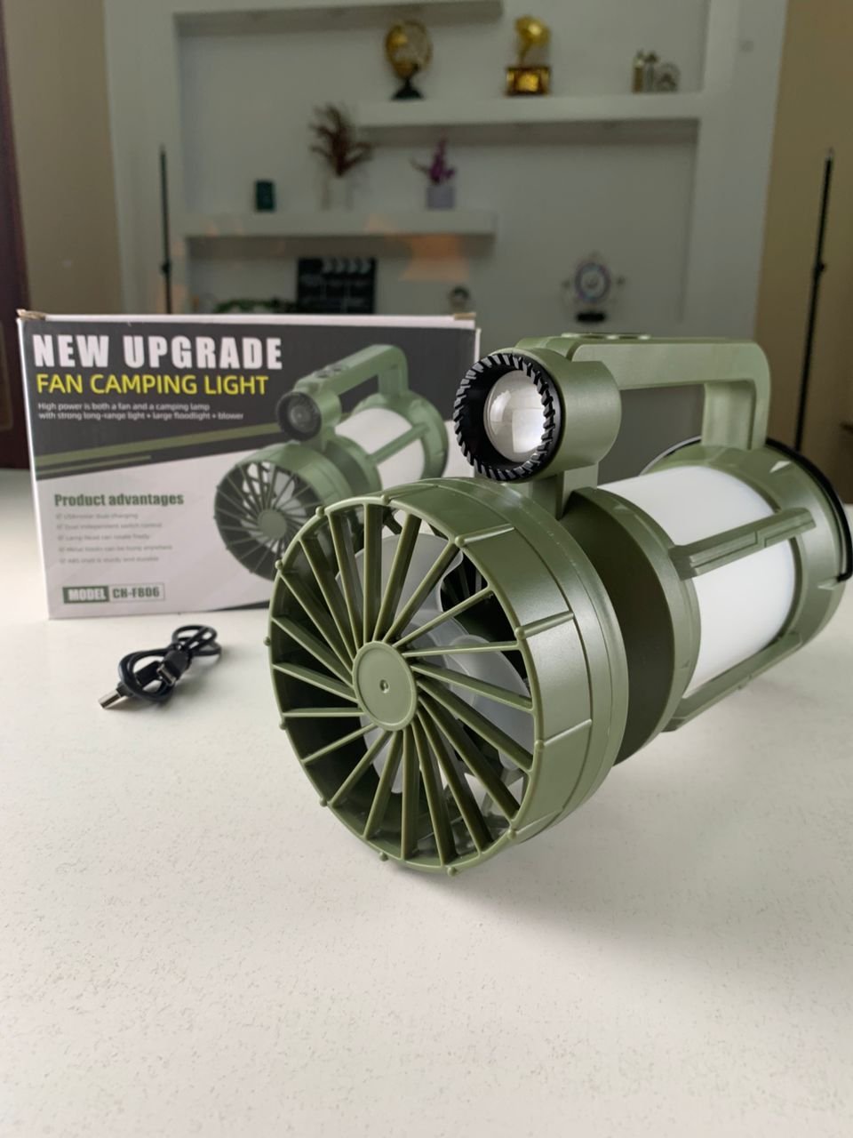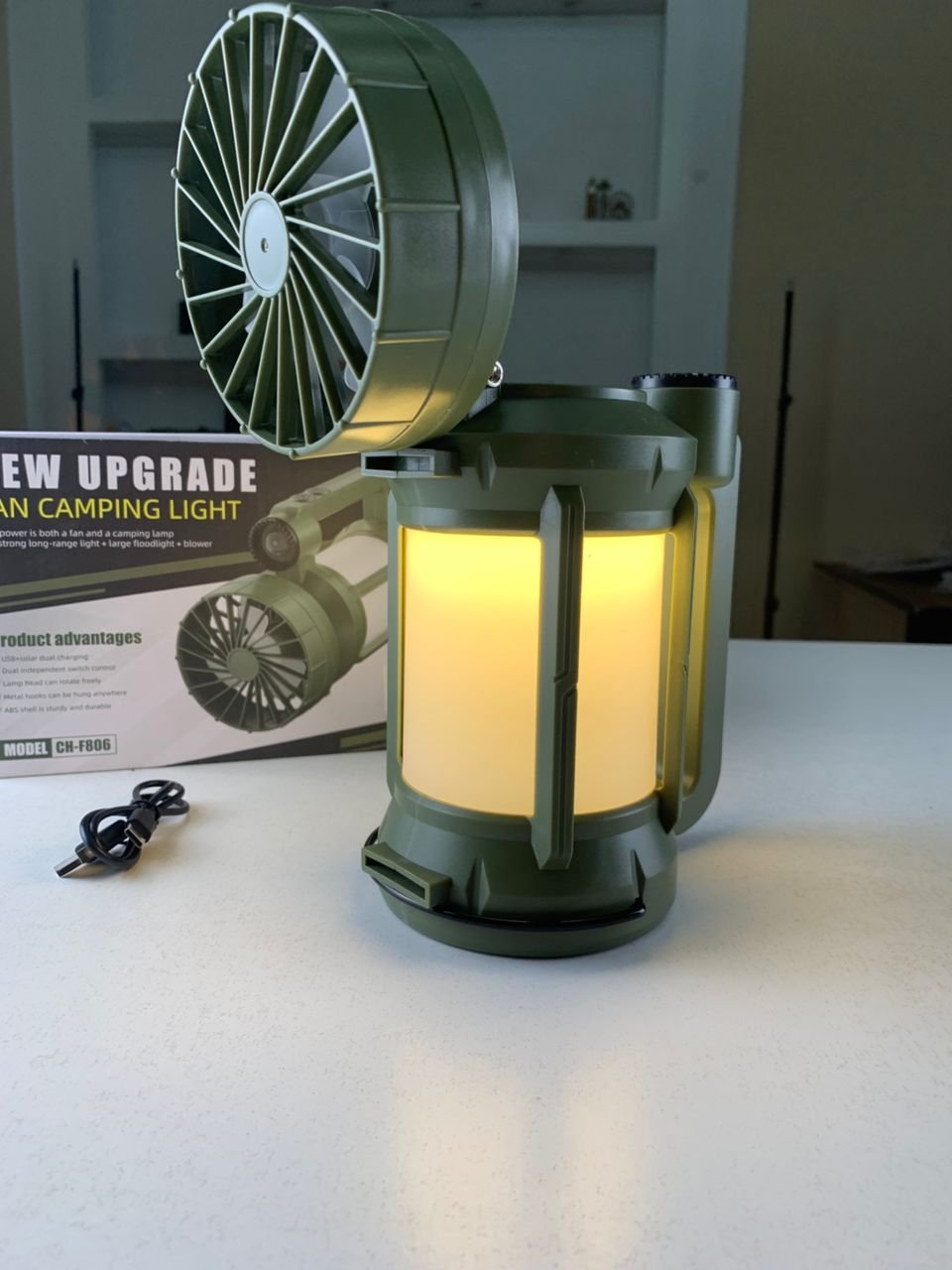 Lanterne de camping LED Rechargeable avec Ventilateur et 4 modes d’éclairage – مصباح ومروحة محمولة