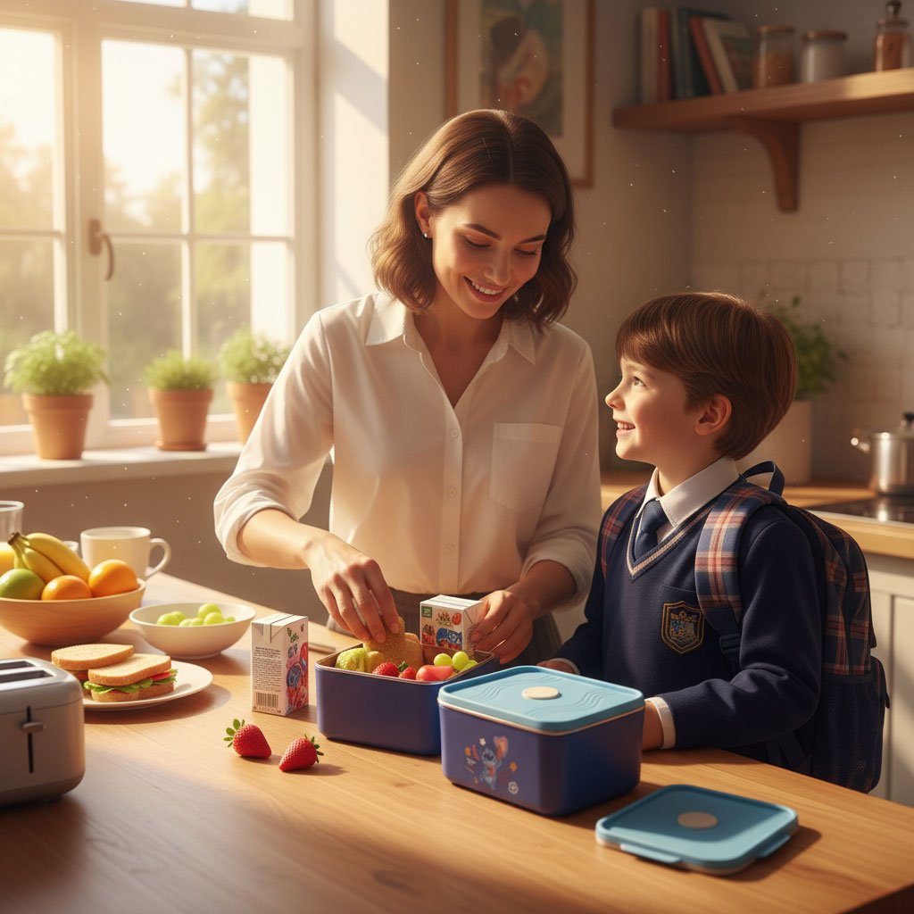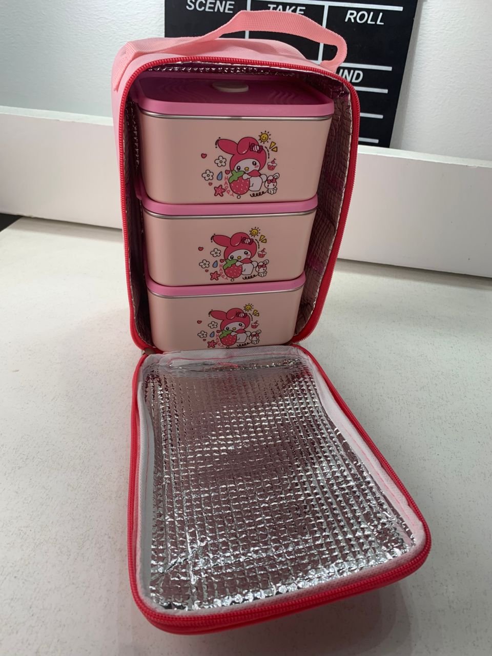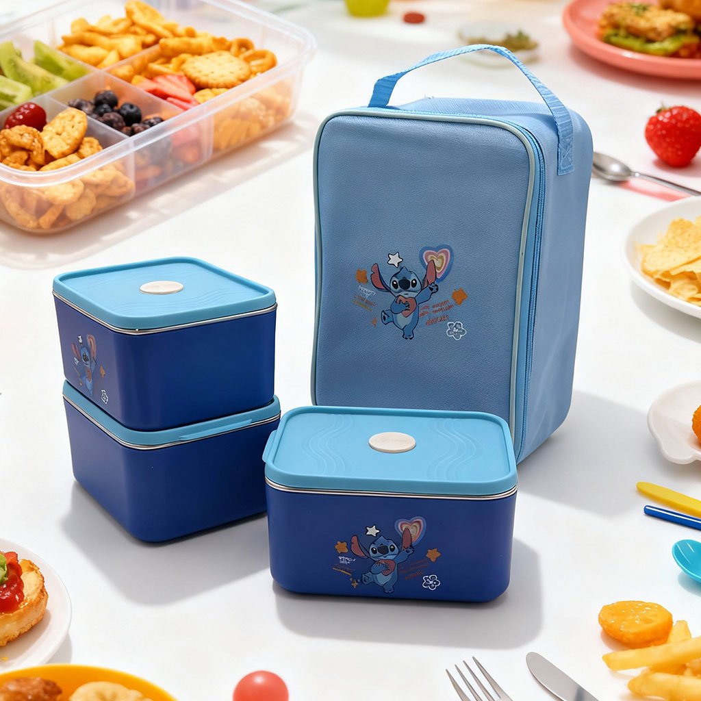 Lunch Box avec Sac Isotherme Design Cartoon 3 Compartiments Alimentaires – حافظة أطعام للأطفال 3 طبقات
