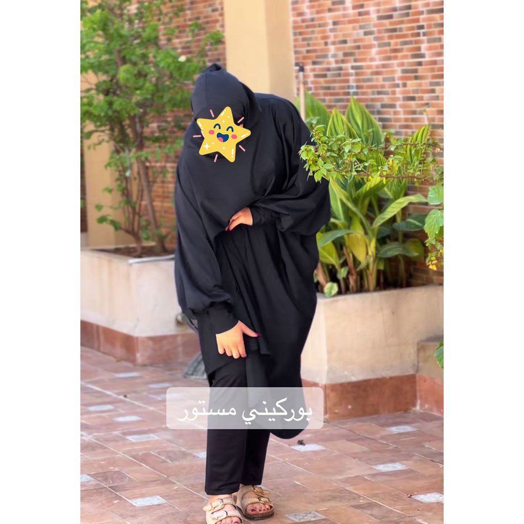 بوركيني 2 قطع – تصميم أنيق ومحتشماستمتعي بالسباحة بكل راحة وأناقة مع هذا البوركيني المصمم لتوفير تغطية شاملة مع حرية في الحركة.الموديل: قطعتان (بنطال + قبعة/غطاء رأس)اللون: أسود كلاسيكيالقماش: سريع الجفاف، مقاوم لأشعة الشمس، ومقاوم للكلورالقصّة: واسعة وغير ضيّقة، توفر ارتداء مريح وعملي في البحر أو المسبح