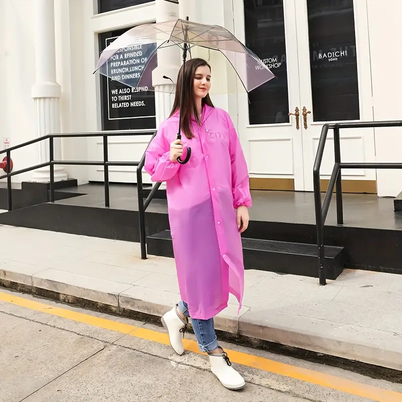معطف واقٍ من المطر – خفيف، شفاف، مقاوم للماء والرياحمقاوم للماء والرياح: مصنوع من مواد عالية الجودة تحميك من الأمطار والرياح في مختلف الظروف.تصميم عاكس: شريط عاكس يزيد من وضوحك أثناء الليل لحماية أفضل.مريح وقابل للتنفس: خامة أوكسفورد عالية الجودة خفيفة الوزن وناعمة على الجسم، تسمح بالتهوية وتمنحك راحة أثناء الاستخدام.وزن خفيف وسهل الحمل: يمكن طيه بسهولة ليكون جاهزًا دائمًا عند الحاجة.شفاف وأنيق: يوفر رؤية واضحة دون التأثير على المظهر، ومقاوم للخدش والتآكل.غطاء للرأس وأساور محكمة: يمنح حماية كاملة من الأمطار والرياح بفضل القبعة المرنة وإحكام المعصمين.