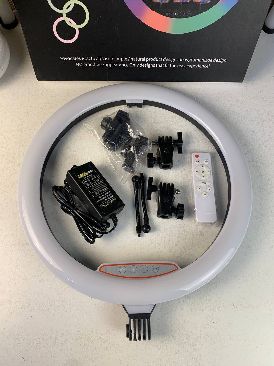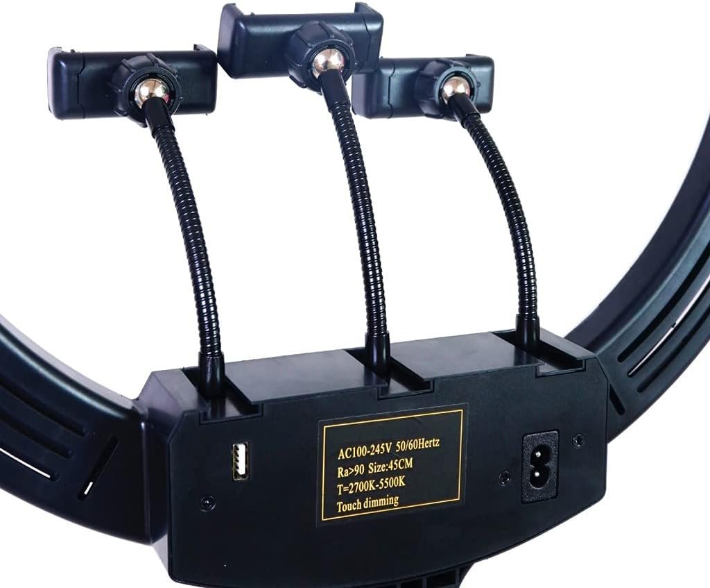 ارتقِ بجودة تصويرك إلى مستوى الاستوديوهات العالمية! لا تكتفي هذه الحلقة بالإضاءة البيضاء التقليدية، بل تفتح لك آفاقاً من الإبداع بفضل نظام الألوان RGB الذي يتيح لك تخصيص “درجة حرارة اللون” ومستوى السطوع بلمسة بسيطة. وبفضل الحامل الثلاثي للهواتف، يمكنك الآن البث المباشر على ثلاث منصات مختلفة في نفس اللحظة وبزوايا مثالية، مما يجعلك مستعداً دائماً لجذب الأنظار.