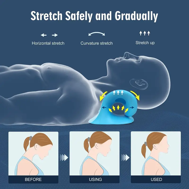 وسادة استرخاء وتمديد للرقبةدعم انحناء طبيعي بفعل الجاذبية مع تمديد ثلاثي الاتجاهات للفقرات العنقية.تصميم مريح يتوافق مع انحناء مؤخرة الرأس ليمنح راحة أكبر.سطح مزدوج (مقعر ومحدب) لتمديد آمن وضغط تدريجي.قناة توجيه مركزية تساعد على اتخاذ وضعية نوم صحيحة.رغوة ناعمة وكثيفة تمنح قاعدة ثابتة وخفيفة ومريحة.توزع الضغط بالتساوي على فقرات العمود الفقري لتخفيف التوتر وآلام الرقبة.المواصفات:الخامة: PUالكثافة: 80 جم/سم³الحجم: 22×7.5×12.5 سماللون: أزرقللجنسينالعبوة تحتوي على:1 × وسادة استرخاء