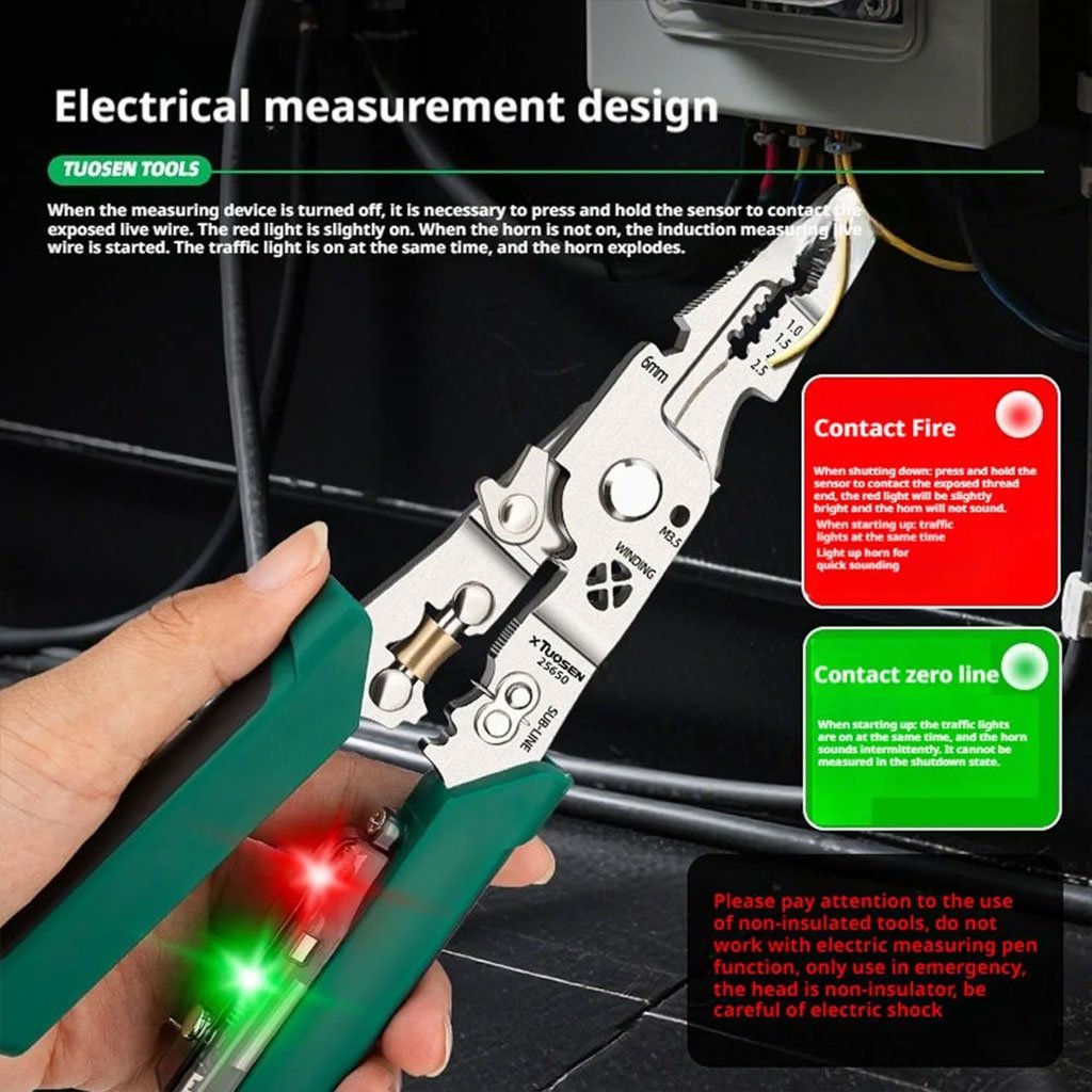 Pince à dénuder multifonction avec testeur de tension – أداة تجريد الأسلاك متعددة الوظائف