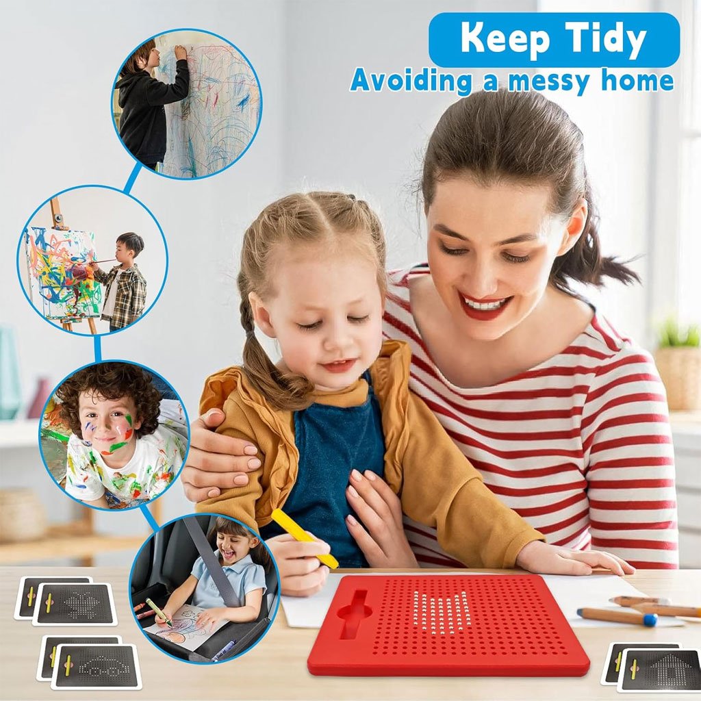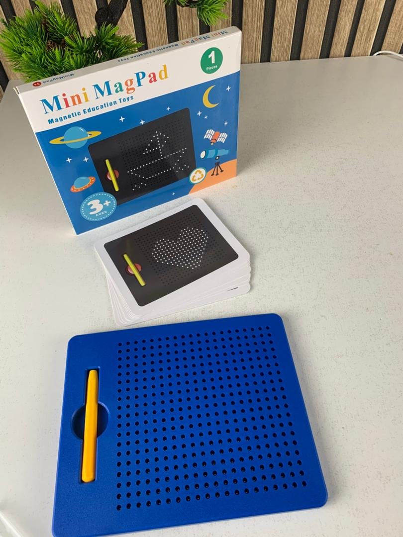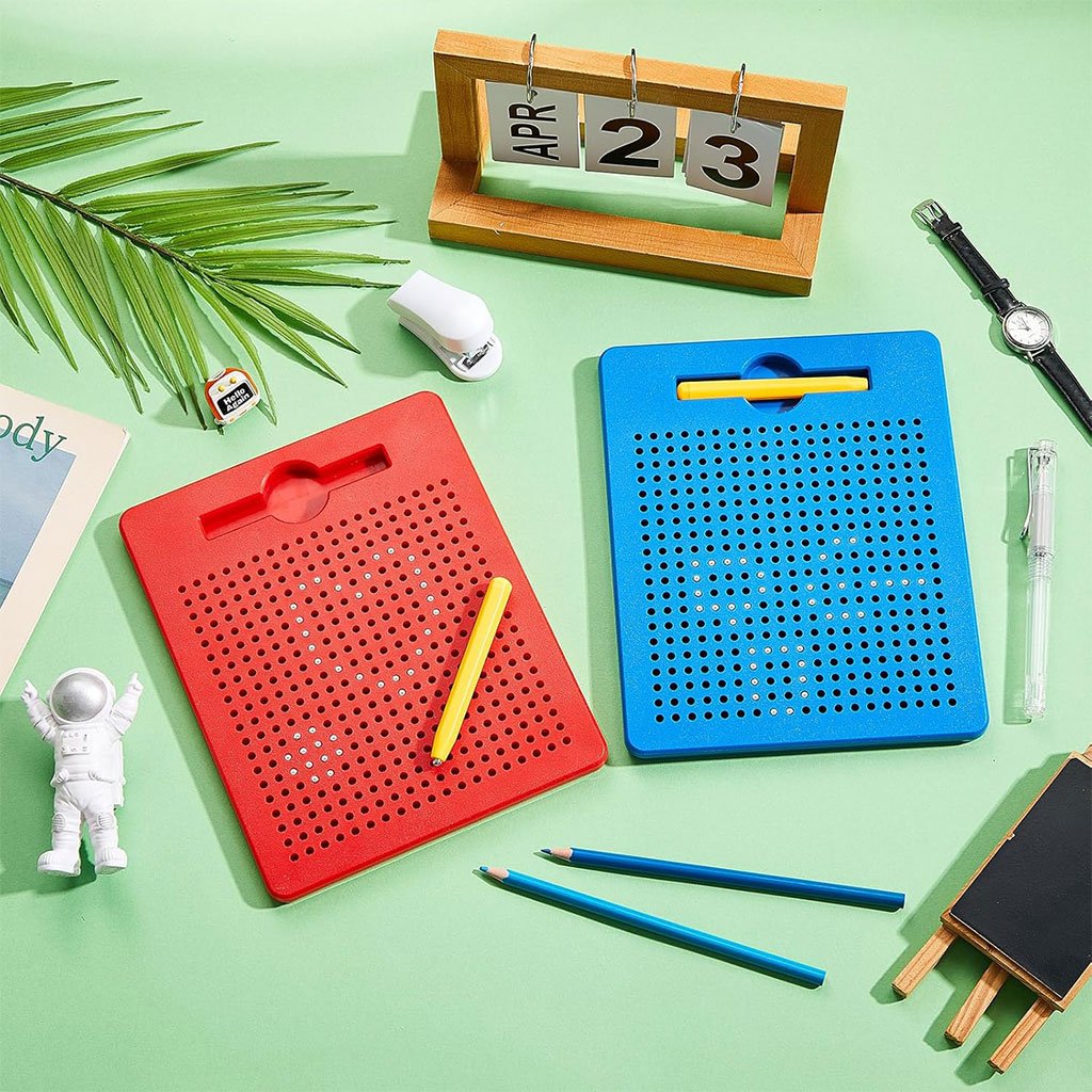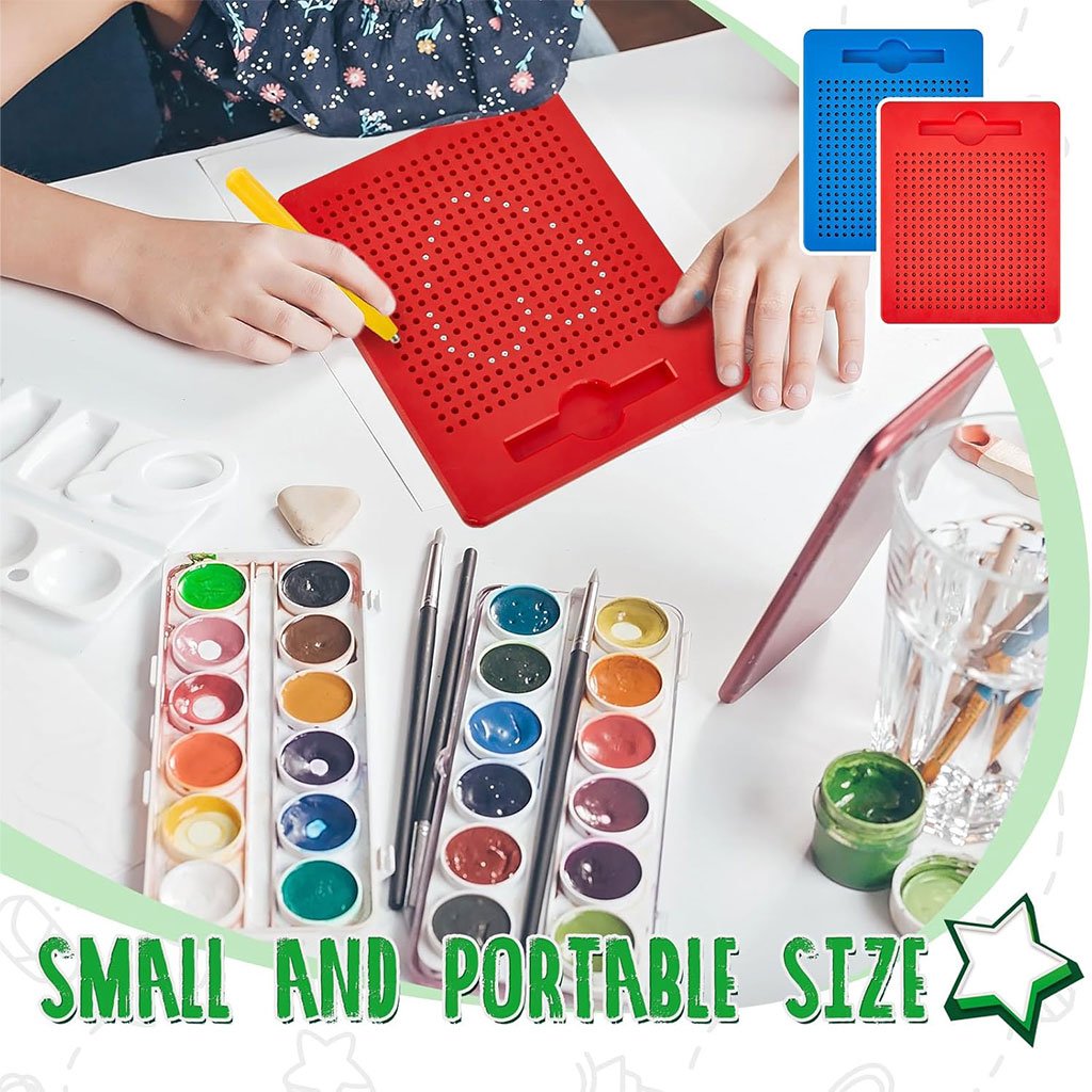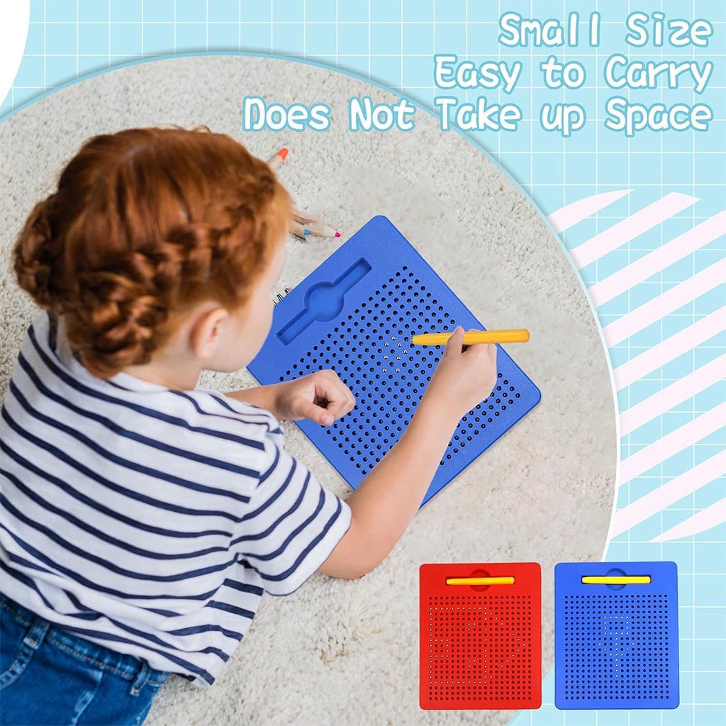 🧲 لوحة رسم مغناطيسية للأطفال – متعة بلا حدود!🎨 رسم بدون فوضىيستطيع الأطفال الرسم والابتكار على لوحة الرسم المغناطيسية باستخدام القلم المرفق دون الحاجة للورق أو الحبر. كما يمكنهم مسح الرسومات وإعادة استخدامها في أي وقت. تتوفر أيضًا بطاقات رسم مزدوجة الوجه لتساعد الطفل على تقليد الأشكال وتعلّم الرسم بسهولة.📏 مضغوطة وسهلة الحملالأبعاد: 21.5 × 17.5 × 1.2 سممناسبة تمامًا ليد الطفليمكن وضعها في الحقيبة أو المكتب مثالية للاستخدام في المنزل، المدرسة، أو حتى أثناء السفر 🚗✈️🧒 سهلة الاستخداممرّر القلم المغناطيسي على سطح اللوحة لرفع الكرات المعدنية وتشكيل الرسومات.لإعادة الكرات إلى مكانها، ادفعها بخفة بواسطة جانب القلم أو الأصبع.🔒 آمنة ومناسبة للأطفالمصنوعة من بلاستيك عالي الجودة وبكرات فولاذية آمنة.البراغي مثبتة بإحكام ومقاومة للسقوط.الكرات مثبتة داخل اللوحة ولن تسقط نهائيًا. ✔️ لعب آمن ومطمئن للآباء.🧠 تنمية وتعلم مبكرهذه اللوحة هي وسيلة رائعة لتطوير:المهارات الحركية الدقيقةالتنسيق بين العين واليدالإبداع والتخيل كما يمكن للأطفال اللعب مع والديهم لتعزيز التفاعل والتواصل الأسري 🤝