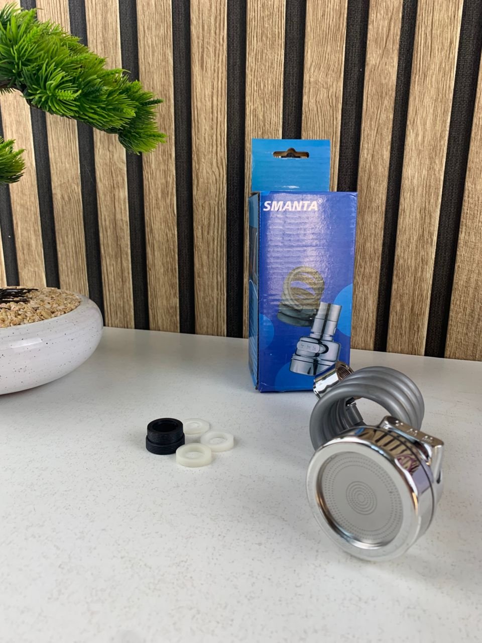 🚰 رأس الحنفية الذكي القابل للدوران 360° – حرية حركة كاملة وتجربة غسل مريحة ! 💧🔄 حرية حركة مطلقةرأس الحنفية مزوّد بأنبوب مرن وقابل للحركة في جميع الاتجاهات، مع مفصل دوّار 360° يمنحك حرية تامة أثناء غسل الأواني أو تنظيف الحوض.مثالي للمطابخ التي تحتاج إلى مرونة أكبر في توجيه الماء دون رشّ أو فوضى.💦 3 أوضاع مختلفة لتدفق المياهبلمسة زر واحدة، يمكنك التبديل بسهولة بين : 1️⃣ وضع الرشّ اللطيف – مثالي لغسل الخضار والفواكه 🍎2️⃣ وضع الضغط العالي – لتنظيف الأواني والدهون الصعبة 🍳3️⃣ الوضع المزدوج – يجمع بين القوتين لتجربة تنظيف فعّالة ومريحة !حتى مع الأيدي المبللة، يمكنك التبديل بسهولة بفضل الأزرار المريحة.🧰 تركيب سريع وسهلالتثبيت لا يحتاج لأي أدوات ! 👇 1️⃣ قم بإزالة المصفاة القديمة من الحنفية 2️⃣ اختر المحول المناسب حسب حجم الخيط3️⃣ ثبّت الرأس الجديد – وانتهى الأمر ✅يتناسب مع أغلب أنواع الحنفيات المنزلية.💧 توفير ذكي للماء دون التأثير على القوةبفضل تصميمه الداخلي عالي الضغط، يضاعف قوة تدفق المياه مع تقليل استهلاكها بنسبة كبيرة.هواء + ماء = تدفق قوي مع توفير ذكي للطاقة والماء 🌿📏 المواصفات :دوران كامل : 360°3 أوضاع لتدفق الماءتركيب سهل وسريعأنبوب مرن قابل للحركةمناسب لجميع أنواع الحنفيات✅ المميزات :✔️ مرونة عالية وسهولة في الاستخدام ✔️ موفّر للماء والطاقة ✔️ تصميم حديث ومتين ✔️ مناسب للمطبخ والحمّام ✔️ تثبيت فوري بدون أدوات