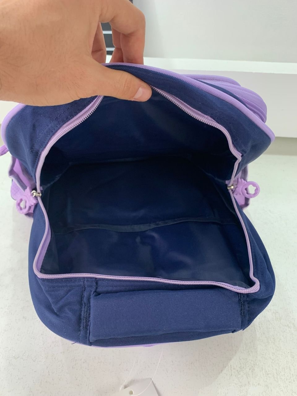 Sac à Dos Enfant Ludique avec Plusieurs Compartiment et un Peluche LM-5122 Bleu Nuit et Mauve – حقيبة ظهر للأطفال أزرق ليلي وبنفسجي