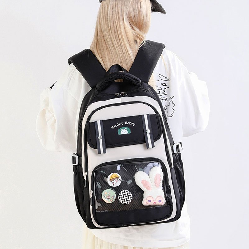 🎒 أضف لمسة من الخيال والمرح ليوم طفلك الدراسي مع حقيبة BoShiKai الكاوايي!امنح طفلك تجربة مدرسية مليئة بالمرح والتميز مع حقيبة الظهر بتصميم كاوايي من BoShiKai – عملية، أنيقة، وقابلة للتخصيص! تصميمها العصري يناسب الأطفال في المرحلة الابتدائية والمتوسطة، كما أنها خيار مثالي لعشاق أسلوب kawaii الكوري المميز.🌸 تصميم كاوايي قابل للتخصيصمزودة بجيب شفاف كبير في الأمام يمكن ملؤه بالدمى الصغيرة، الملصقات، الشارات أو أي عناصر زينة يحبها طفلك – لتُضفي عليه طابعًا شخصيًا فريدًا.🎒 راحة يومية مضمونةحمالات كتف عريضة وقابلة للتعديل، مع ظهر مبطّن يضمن حملًا مريحًا طوال اليوم، سواء في المدرسة أو أثناء الخروج.🗂️ تنظيم ذكي بمقصورات متعددةعدة جيوب داخلية وخارجية لحمل الدفاتر، المقلمة، الأجهزة اللوحية، قارورة الماء والمزيد.🐰 تصميم أرنب لطيف وشعار جذابستايل عصري مزين بأرنب أبيض صغير ولمسات مستوحاة من الموضة الكورية الشبابية.🧳 مثالية للمدرسة أو النزهاتخفيفة، متينة، ومقاومة للماء – مناسبة للدراسة، الرحلات، التسوق أو التنزه.📝 المواصفات:الأبعاد: 45 × 35 × 25 سمالجيوب: جيب أمامي شفاف مزود ببادجات ودمية صغيرة (مشمولة)الفئة المستهدفة: الأطفال من الابتدائي، الإعدادي، أو محبي تصميمات kawaiiالخامة: قماش متين ومقاوم للماءالسحّابات: قوية الجودة ومريحة في الاستخدام