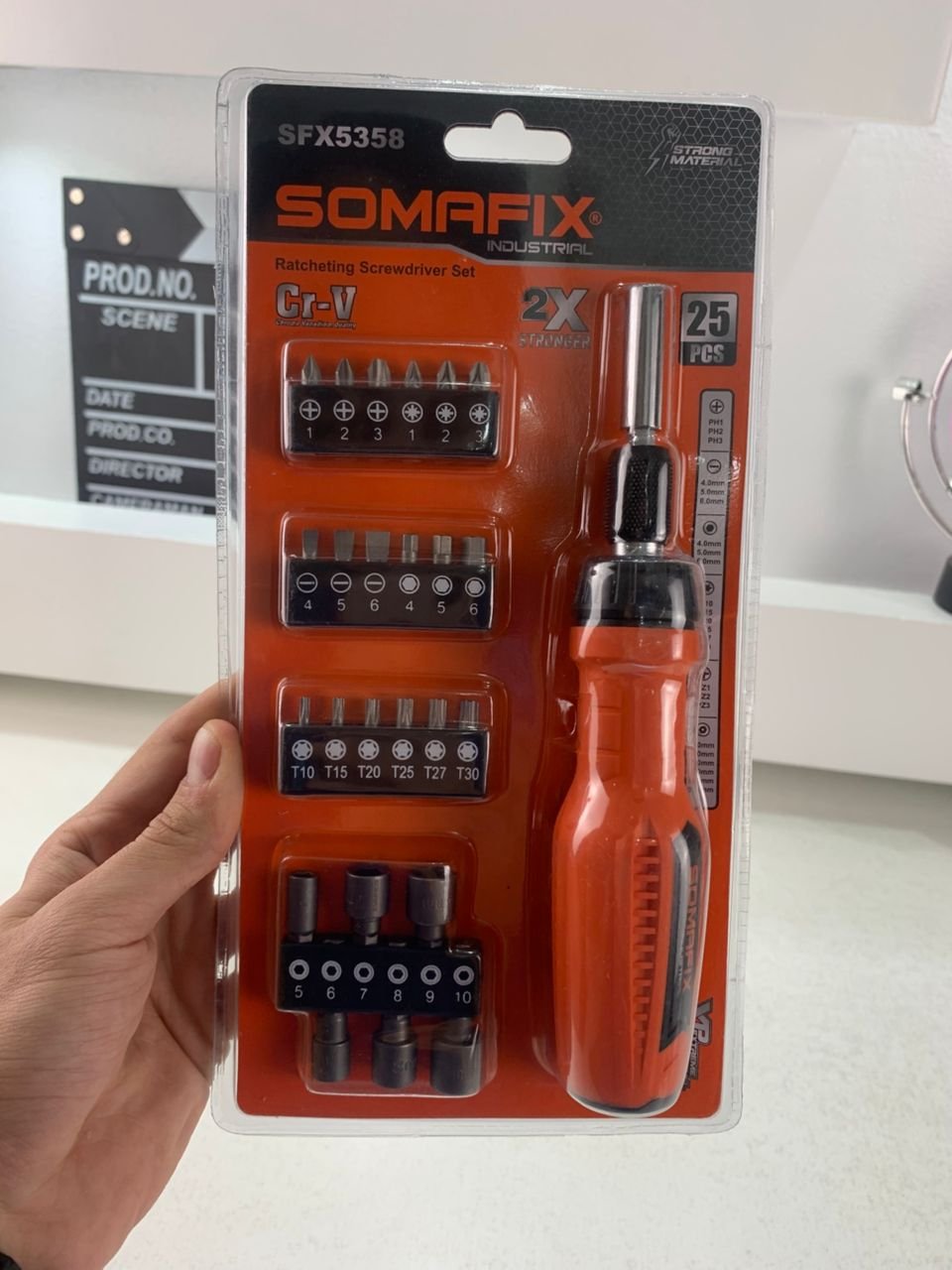 مطقم مفك براغي من 25 قطعة – Tournevis Cliquet SOMAFIX SFX5358 Coffret 25 Pièces en Acier Cr-V