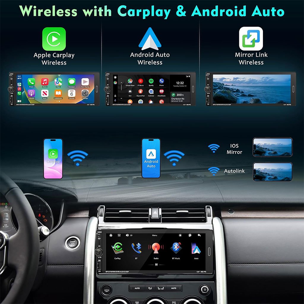 Autoradio 1 DIN avec écran Tactile de 6,9 Pouces Compatible avec Apple CarPlay Wireless/Android Auto – جهاز راديو سيارة