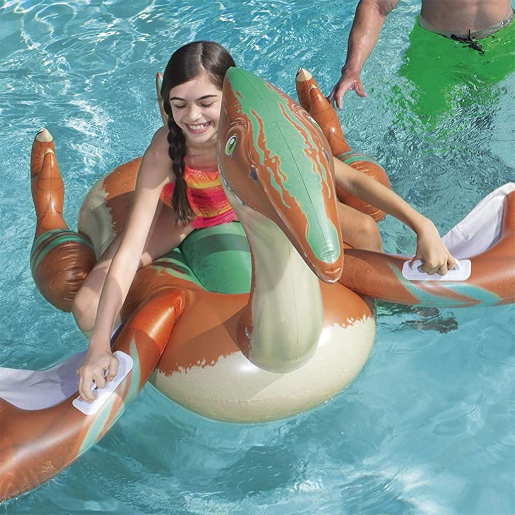 ديناصور قابل للنفخ من Bestwayالأبعاد: 135 × 198 سماللون: متعدد الألوانغير مناسب للأطفال دون 3 سنواتالوزن الأقصى: 45 كغمزود بمقبضين متينين لزيادة الأمانمصنوع من فينيل متينمناسب للاستخدام في المسبح أو البحريحتوي على طقم إصلاح.