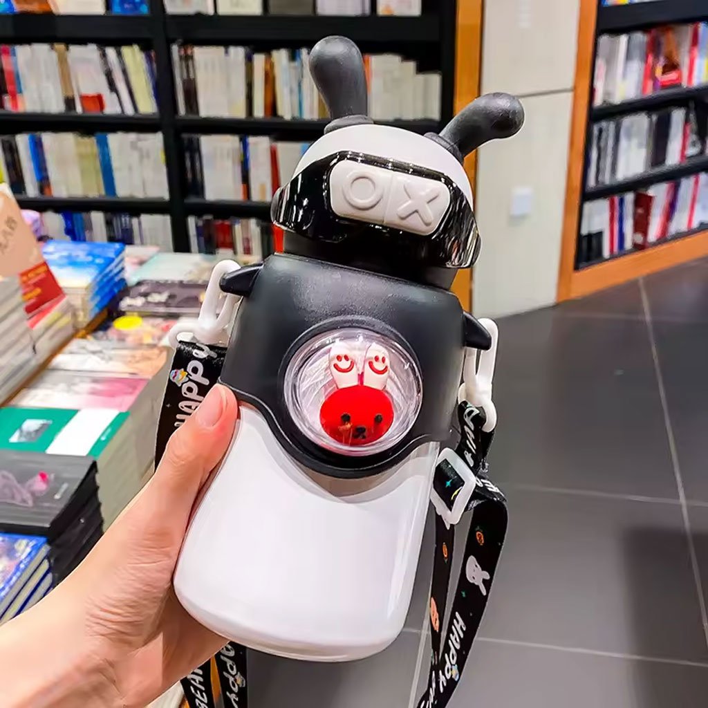 Bouteille Thermos en Acier Inoxydable 500 ml avec Paille, Motif Lapin pour Enfants