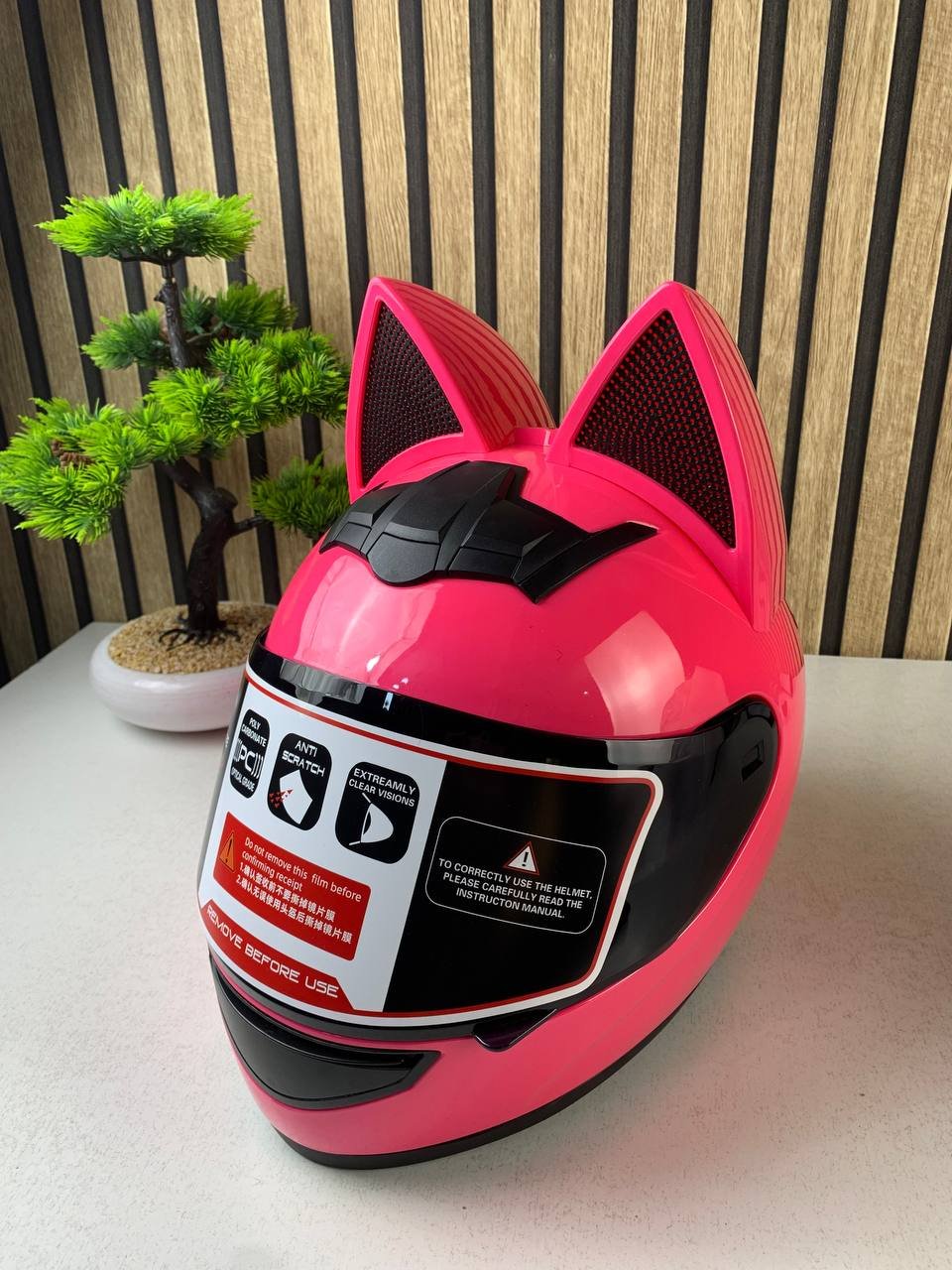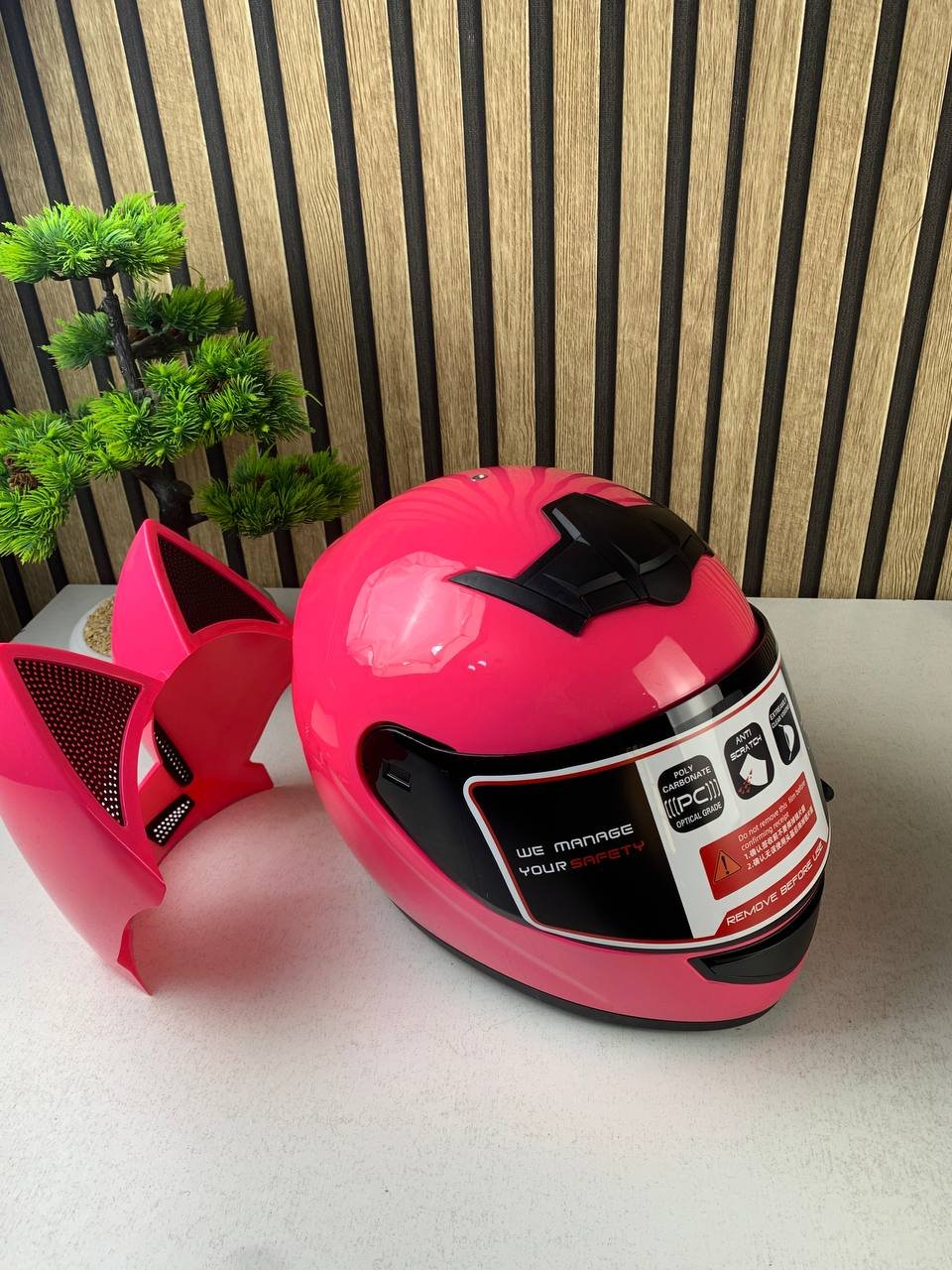 Casque de moto pour femme et fille avec oreilles de chat – خوذة احترافية للنساء