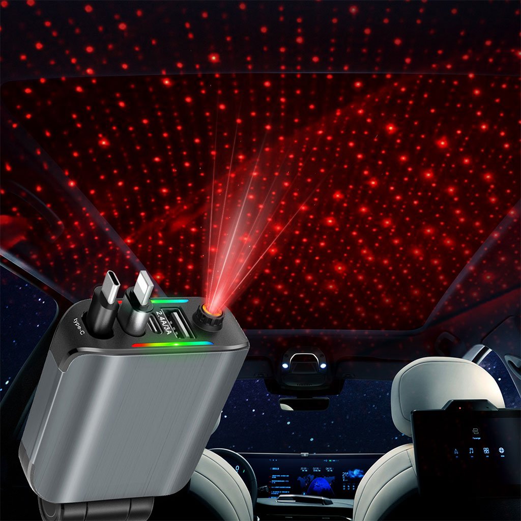 Chargeur Voiture 4en1 Rétractable 120W avec toit Starlight pour téléphones iOS et Android- شاحن سيارة متعدد المنافذ