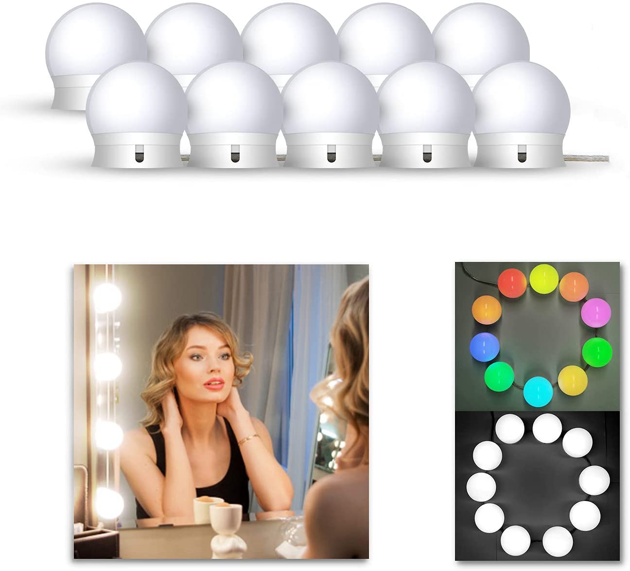 💡 إضاءة مرايا المكياج بتقنية RGB (10 لمبات)سطوع مميز بلون 6000K مع استهلاك طاقة منخفض (1.6 واط لكل لمبة).تصميم متعدد الاستخدامات: مناسب للمكياج، الديكور والإضاءة الداخلية والخارجية.مواد عالية الجودة: قاعدة ABS مع غطاء إضاءة PC.تشغيل عبر USB (5V 2A فأعلى).سلك بطول 2 متر، 10 لمبات إضاءة RGB مبهجة.حجم الكرة: 45×45×51 مم. (المرآة غير مشمولة)محتويات العبوة:مجموعة إضاءة كاملة (10 لمبات).دليل الاستخدام.10 لواصق تثبيت إضافية.
