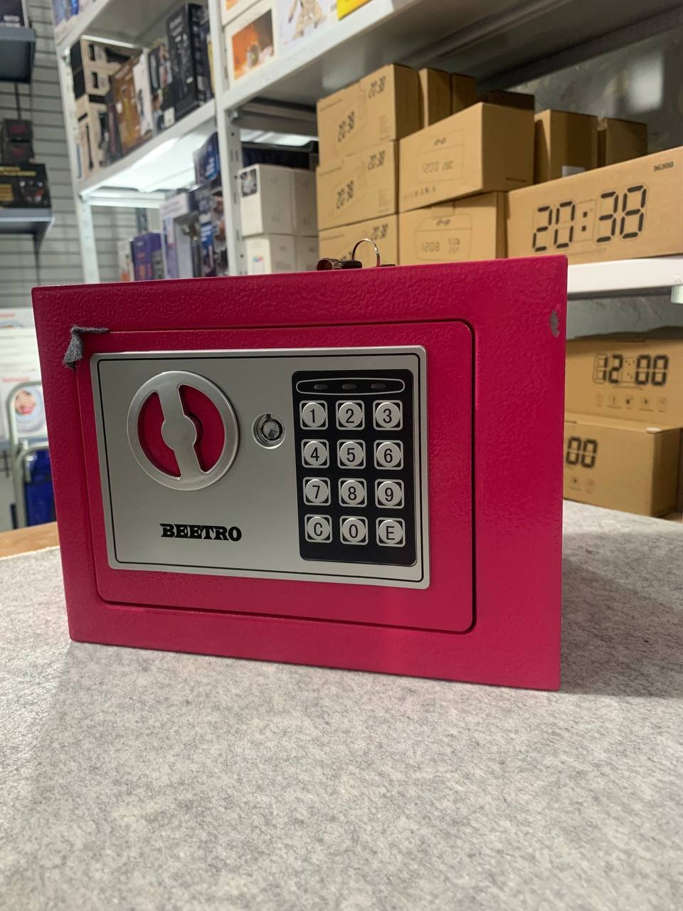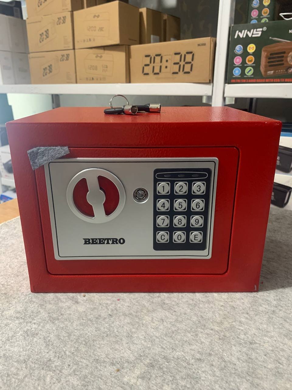 خزنة آمنة بترميز رقمي ومفاتيح احتياطية من Beetroقفل رقمي قابل للبرمجة (3 إلى 8 أرقام).إمكانية الفتح الطارئ باستخدام مفتاحين مرفقين.دعم التركيب على الجدار أو داخل الخزانة.قفل عالي الجودة بمزلاجين فولاذيين (إغلاق مزدوج).الوزن: 2.4 كجم.الأبعاد: 25×19×19 سم.