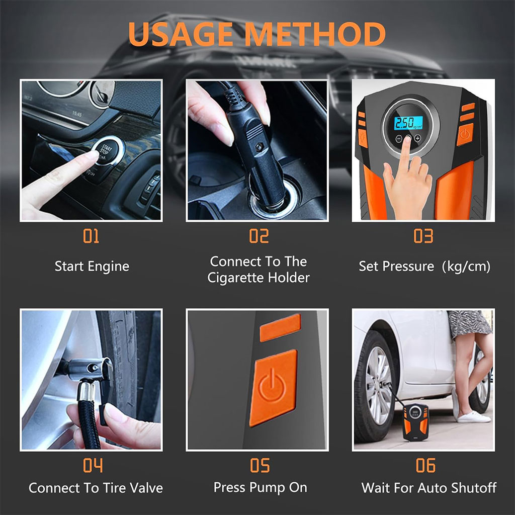 Compresseur d’Air Numérique pour Voiture et Moto 150Psi BE0173 – جهاز ضغط العجلات محمول