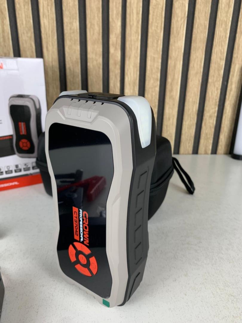 ⚡🚗 Booster CROWN CT37042 – القوة لي ترجّع سيارتك تخدم في لحظاتالبوستر CROWN CT37042 هو الحل المثالي لأي واحد يحب يكون دايمًا جاهز. جهاز قوي، متعدّد الاستعمالات، وسهل الاستخدام، يعطيك قدرة حقيقية باش تشعل سيارتك فورًا حتى إذا كانت البطارية هابطة كامل.بقدرة بطارية 3.7V / 25800mAh / 95.46Wh وقوة تشغيل 2000A (قمة حتى 4000A)، تقدر تعتمد عليه في أصعب الظروف وبلا ما تحتاج مساعدة من أي شخص.⭐ المميزات الرئيسية :✔ قوة تشغيل عالية بزاف يشعل موتورك بسرعة حتى مع بطارية شبه ميتة، بتيار 2000A وقمة 4000A.✔ باور بنك ذكي 2 في 1 فيه مدخل USB-C وزوج مخارج USB باش تشحن تليفونك، طابلات، سماعات… وين ما تكون.✔ شاشة LCD واضحة تعطيك مستوى البطارية، الضغط تاع الكومبريسور، ووضع التشغيل بكل دقة.✔ كومبريسور مدمج حتى 150 PSI للنفخ تاع العجلات، البالونات، واللوازم الرياضية بكل سهولة.✔ لاampe LED بثلاث أوضاع مثالية للطوارئ، الليل، والأماكن لي الإضاءة فيها ضعيفة.✔ حماية قصوى مجهّز بأنظمة حماية ضد الشحن الزائد، العكس، السخونة الزايدة، والشرارات.✔ سهل الحمل وخفيف تصميم كومباكت يخليه مناسب للسيارة، السفر، والطرق الطويلة.📌 المواصفات التقنية :سعة البطارية : 3.7V / 25800mAh / 95.46Whتيار التشغيل : 2000Aتيار القمة : 4000Aضغط النفخ : حتى 150 PSIالمداخل/الخروج :USB-C input2 × USB outputشاشة LCDإضاءة LED بثلاث أوضاعالحماية : ضد الشحن الزائد، العكس، السخونة، والماس الكهربائي🎁 الملحقات المرفقة :كابل USB-Cخرطوم نفخ 40cm4 رؤوس نفخ متعددة الاستعمالاتكلالب بطارية ذكية Smart Clamp🛠️ الاستخدامات :✔ تشغيل السيارات في ثواني ✔ باور بنك قوي للأجهزة ✔ كومبريسور للنفخ ✔ إضاءة للطوارئ📌 الرفرونس : CT37042