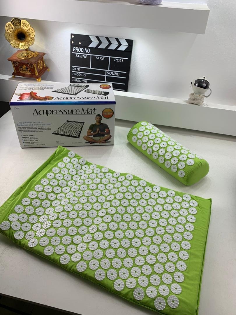 🧘♂️ طقم حصيرة وأريكة العلاج بالضغط – لتخفيف الألم والاسترخاء العميقالألوان المتوفرة: الأزرق – الأخضراستمتع براحة تامة وجسم خالٍ من التوتر بفضل حصيرة وأريكة العلاج بالضغط المصممة خصيصًا لتحفيز نقاط الطاقة في الجسم، على غرار الطب الصيني التقليدي.✅ الفوائد:تخفيف الآلام والتوتر: تساعد الحصيرة والوسادة في تخفيف التوتر، والآلام، والتشنجات العضلية، وآلام الرقبة، من خلال تنشيط الدورة الدموية.علاج طبيعي لمشاكل الظهر: فعالة ضد آلام الظهر، التصلب، الأرق، الإجهاد، والإرهاق العام، بدون أدوية أو تدخلات خارجية.تحفيز نقاط الضغط: تعمل على تنشيط نقاط الضغط المرتبطة بالطب الصيني، مما يعزز إفراز الجسم لمواد تساعد على الاسترخاء والراحة.📐 المواصفات:المكونات:الحصيرة + الوسادة + حقيبة تخزينأو فقط الوسادةأو فقط الحصيرةالأبعاد:الحصيرة: 65 × 40 سمالوسادة: 35 × 15 × 10 سمالوزن:الحصيرة: 490 غرامالوسادة: 180 غرامالحقيبة: 20 غرام