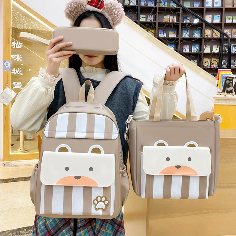 Ensemble de sacs d’école Kawai pour adolescents 3Pcs Ours Beige – محفظة 3 قطع كاواي بيج