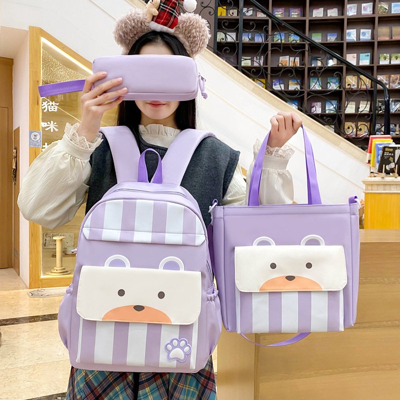 Ensemble de sacs d’école Kawai pour adolescents 3Pcs Ours Mauve – محفظة 3 قطع كاواي بنفسجي