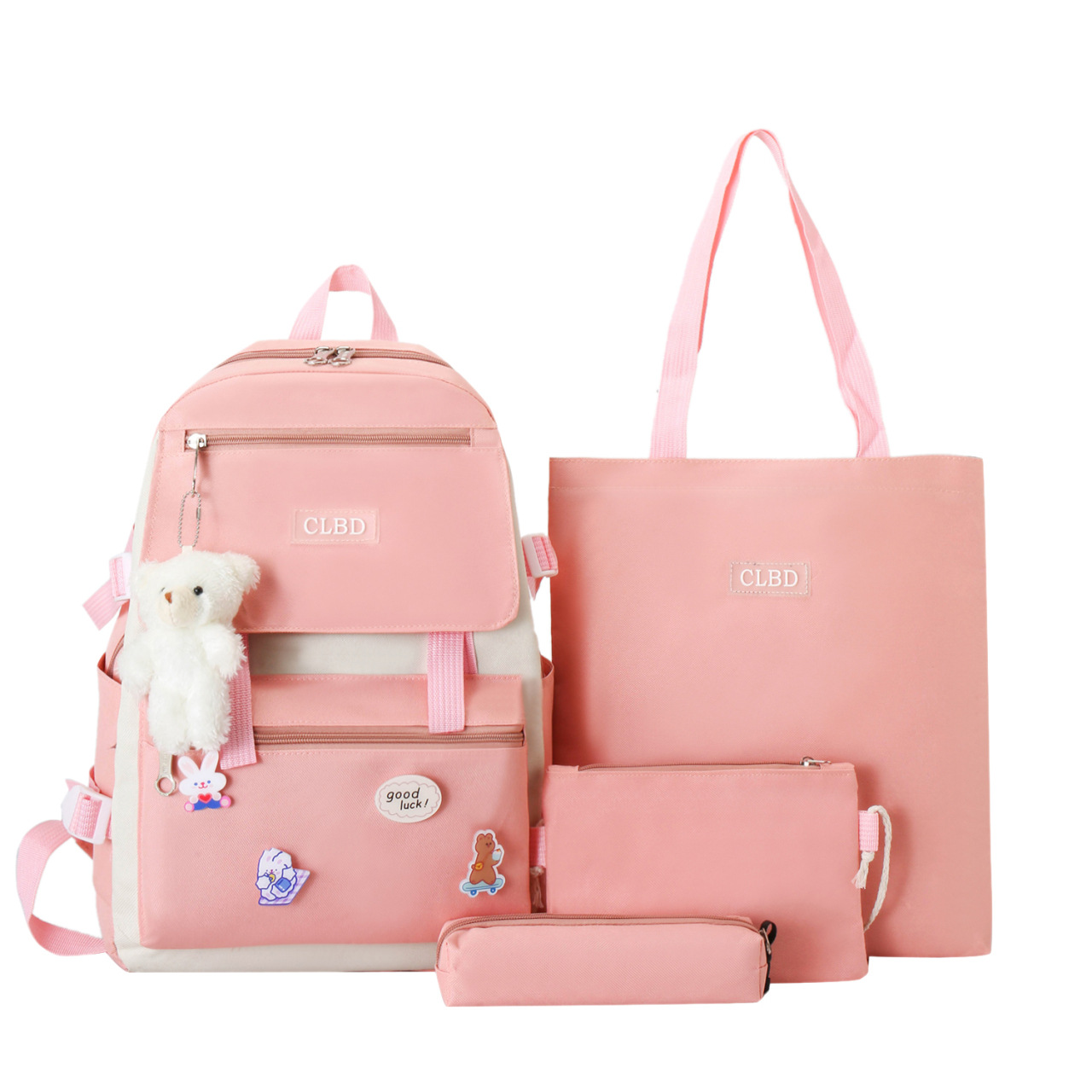 Ensemble de sacs d’école Kawai pour adolescents 4Pcs CLBD V1 Rose – محفظة 4 قطع كاواي وردي