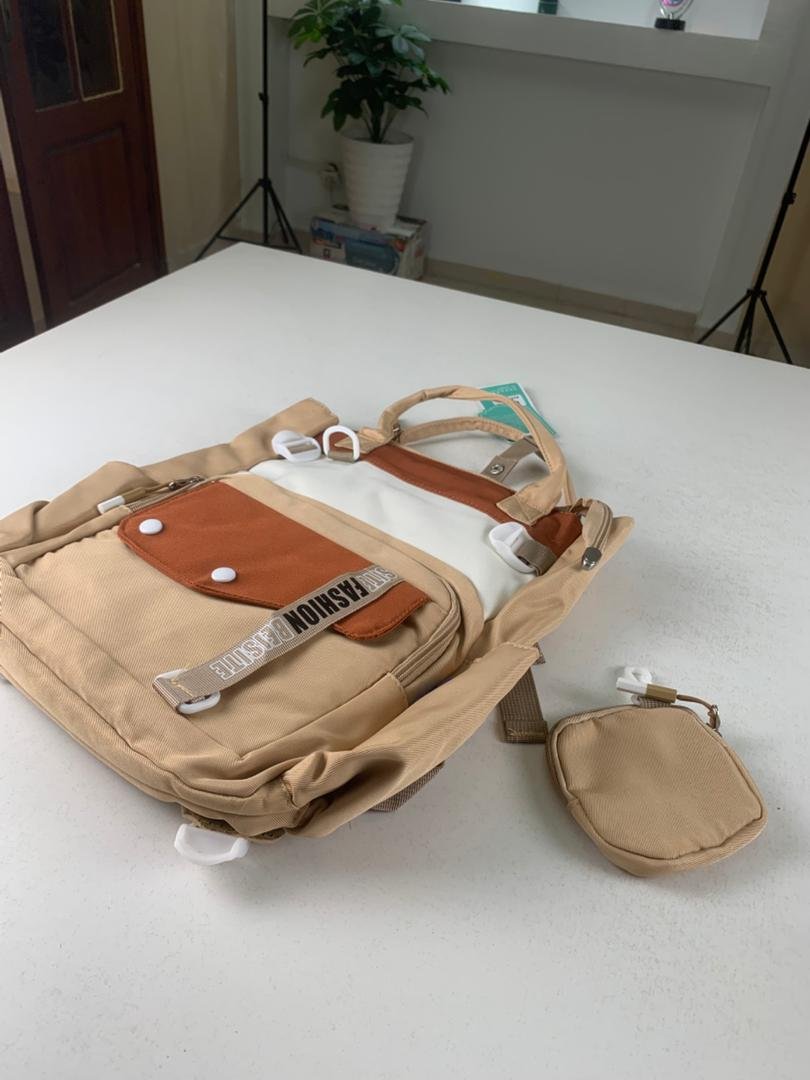 🎒 اجمع بين الأناقة والعملية مع حقيبة الظهر العصرية – مثالية لكل يوم!سواء كنت متوجهًا إلى المدرسة، العمل أو في نزهة يومية، هذه الحقيبة ستكون رفيقك المثالي. تجمع بين التصميم العصري، الراحة، وسعة التخزين، لتلبي كل احتياجاتك اليومية بأناقة.✅ تصميم ثنائي اللون أنيق دمج مميز بين اللون البني، البيج، والأبيض المائل للسكري مع تشطيب راقٍ يلفت الأنظار.✅ مساحة تخزين واسعة قسم رئيسي كبير + جيوب جانبية عملية + جيب أمامي بسحاب + مقلمة صغيرة مرفقة.✅ متعددة الاستخدامات يمكن حملها على الظهر أو باليد بفضل الحمالات المبطنة والمقابض المتينة.✅ مادة مقاومة للماء مصنوعة من قماش متين وسهل التنظيف – مقاومة للماء لتناسب مختلف الظروف.📐 المواصفات:الأبعاد: 40 × 30 × 10 سمالاستخدام: مدرسة – جامعة – عمل – نزهات يوميةالمحتوى: حقيبة ظهر + مقلمة صغيرة