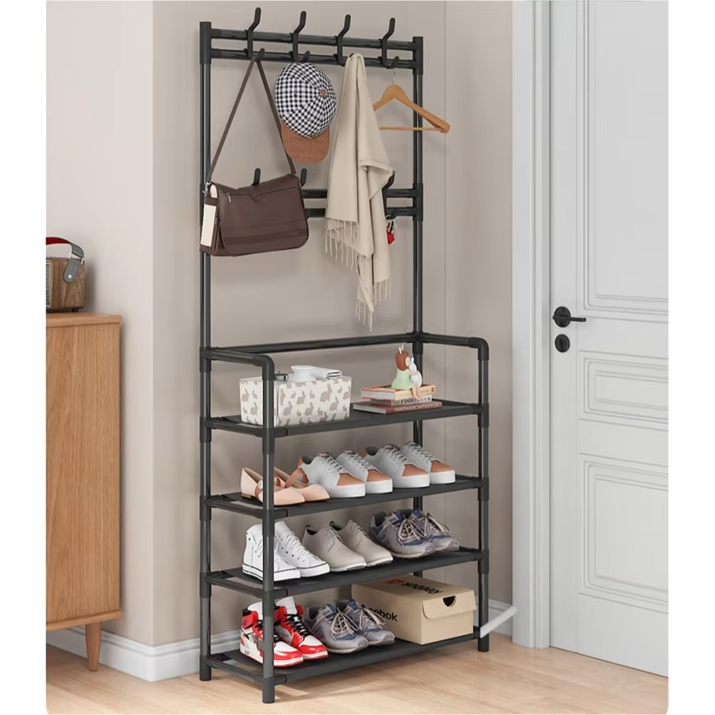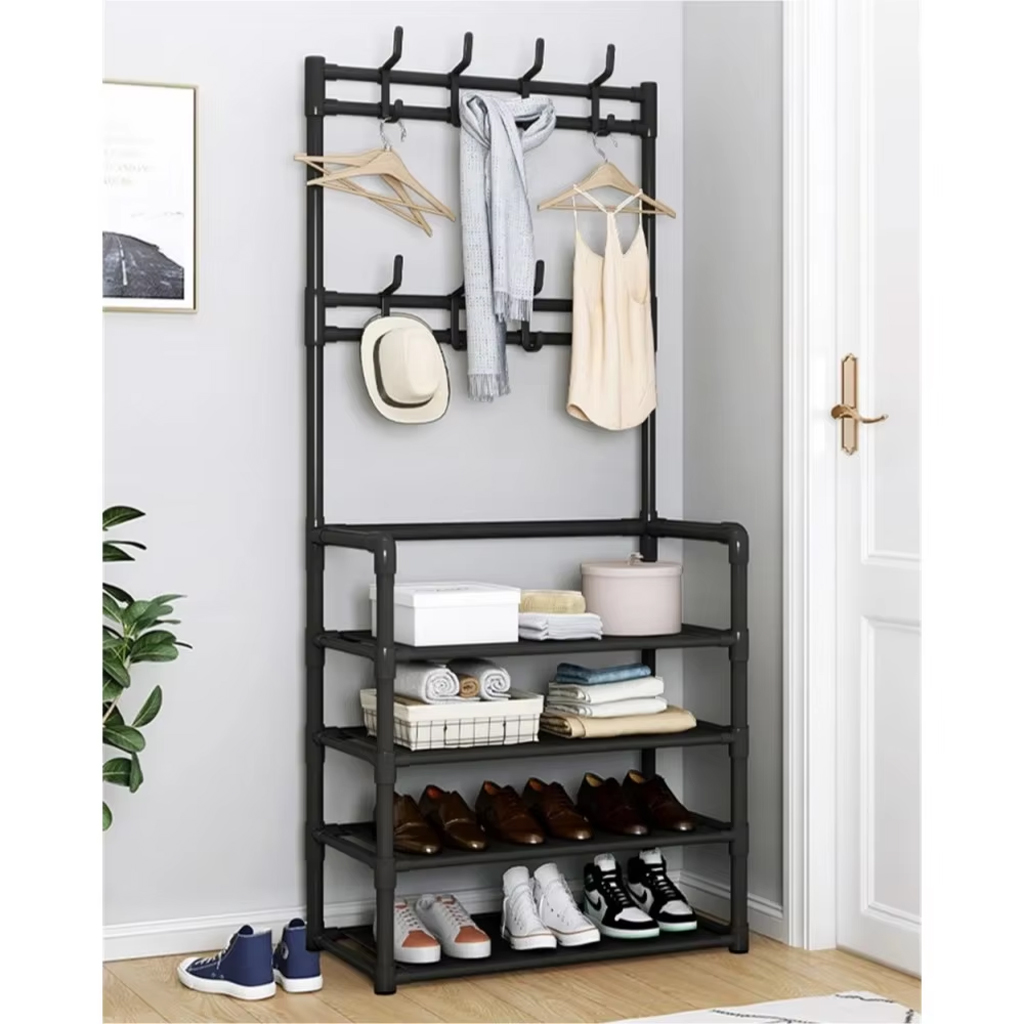 Étagère De Chaussures et Porte-manteau 4 Étages crochets – رف أحذية ومعاطف مع خطافات من 4 طبقات