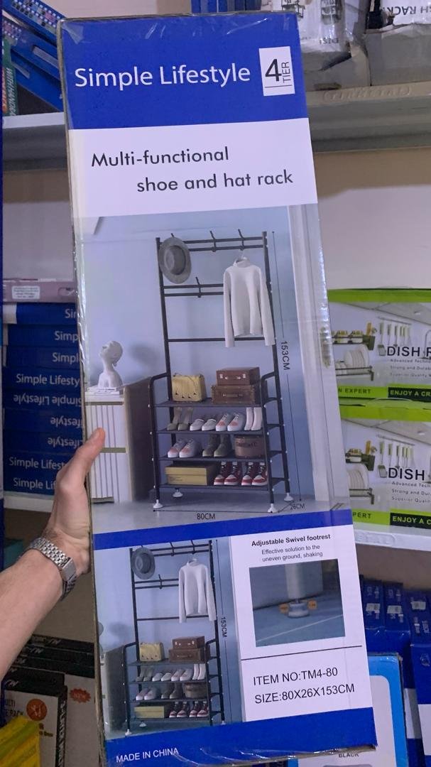 🧥 رف متعدد الاستخدامات للتخزينرف أنيق وعصري لتنظيم الأحذية، المعاطف، المظلات وغيرها من الأغراض في مدخل المنزل.✅ هيكل متين مصنوع من فولاذ متين وأرفف بلاستيكية لتحمل الأوزان الثقيلة.✅ تركيب بسيط يُرسل مع دليل إرشادي سهل للتركيب السريع دون عناء.✅ تصميم صناعي أنيق لمسة جمالية باللون الأسود تناسب أي ديكور منزلي.⚖️ يتحمل وزنًا يصل إلى 80 كغ