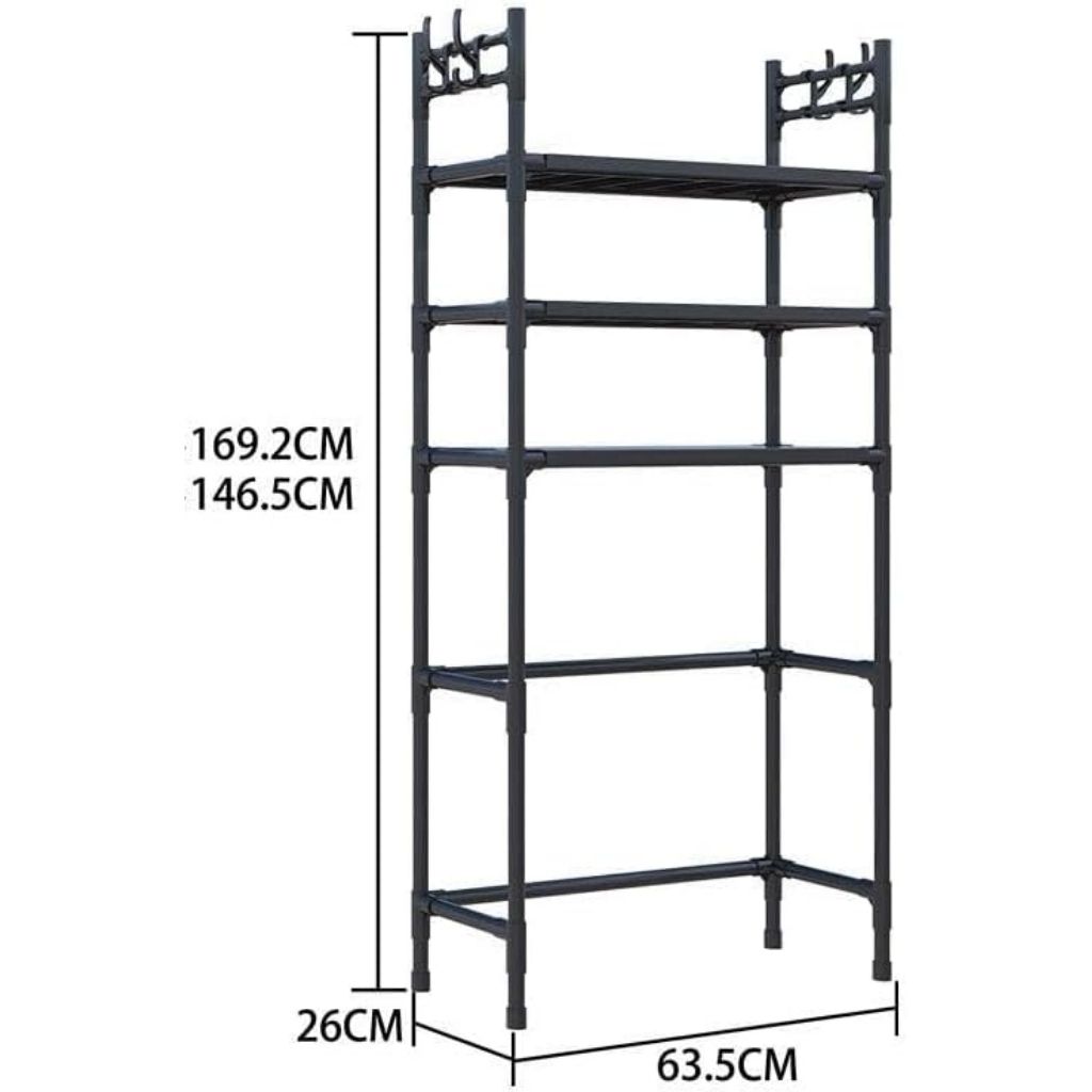 تحسين المساحة: صُمم هذا الرف ليوضع فوق المرحاض أو الغسالة، ليوفر حلاً تخزينياً رأسياً يُحسّن من استغلال المساحة المتاحة في حمامك.تصميم ثلاثي الطبقات: يتميز بثلاثة أرفف واسعة، تُتيح لك تخزين مختلف مستلزمات الحمام، ومنتجات التنظيف، أو غيرها من مستلزمات الحمام، مع الحفاظ عليها منظمة وسهلة الوصول إليها.خطافات عملية: مُزود بخطافات جانبية، يوفر هذا الرف مساحة إضافية لتعليق الإسفنج، والمناشف، أو غيرها من الملحقات، مما يُحسّن التخزين والتنظيم.هيكل متين: مصنوع من مواد عالية الجودة، يضمن الرف متانة وثباتاً مُعززين، ويدعم وزن أغراضك دون المساس بهيكله.سهولة التركيب: صُمم الرف لسهولة التركيب، ويأتي مع تعليمات واضحة وجميع الأدوات اللازمة، مما يُتيح لك إعداده بسرعة والبدء في استخدامه على الفور.حسّن تنظيم حمامك وكفاءته مع رف التخزين ثلاثي الطبقات هذا – حل عملي وأنيق لتحسين مساحتك.