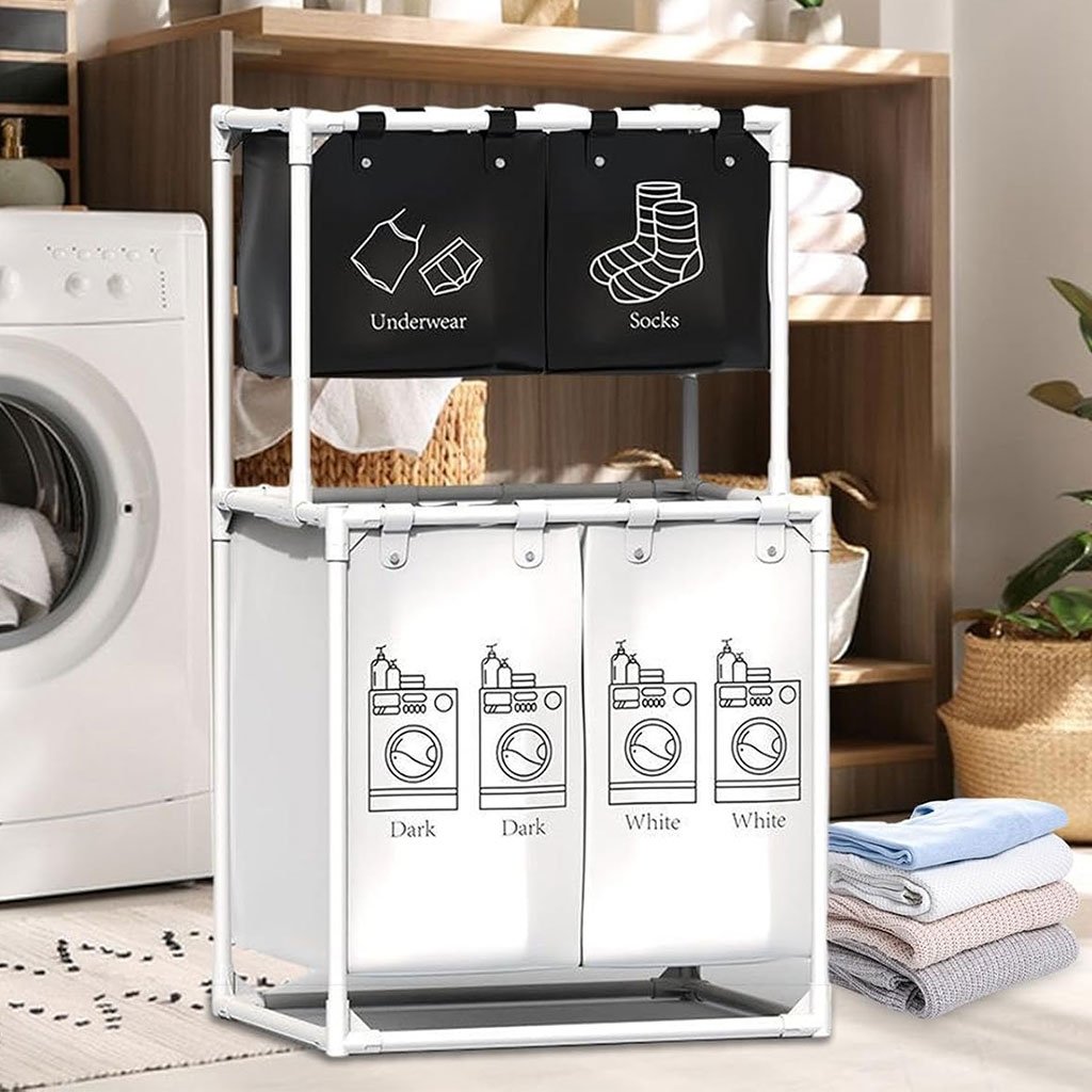 Grand Panier à Linge 4 Compartiments pour Ranger les Vêtements –