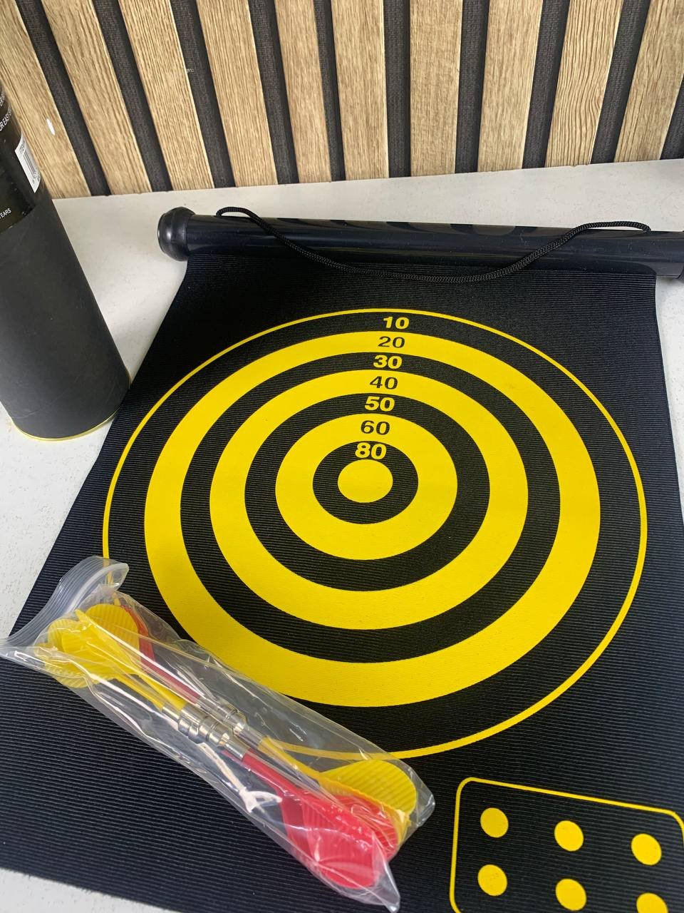 Jeu de fléchettes magnétique avec cible enroulable et suspendue avec 6 fléchettes incluses – لعبة رمي السهام