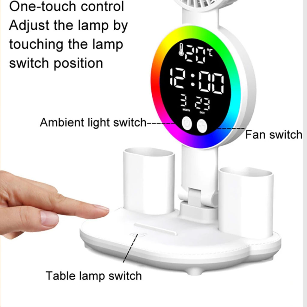 Lampe de Bureau LED Ambiante avec Alarme et Lumière RGB – مصباح مكتب ومنبه بأضواء ملونة