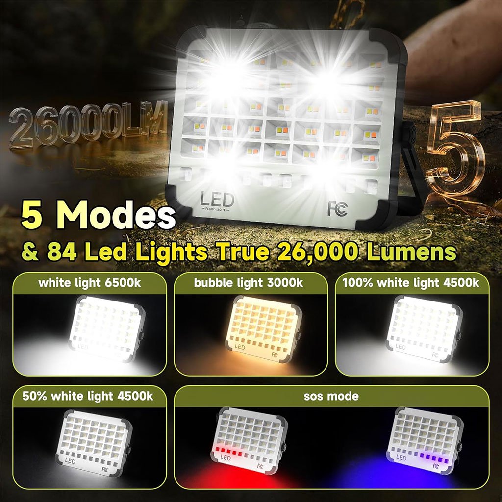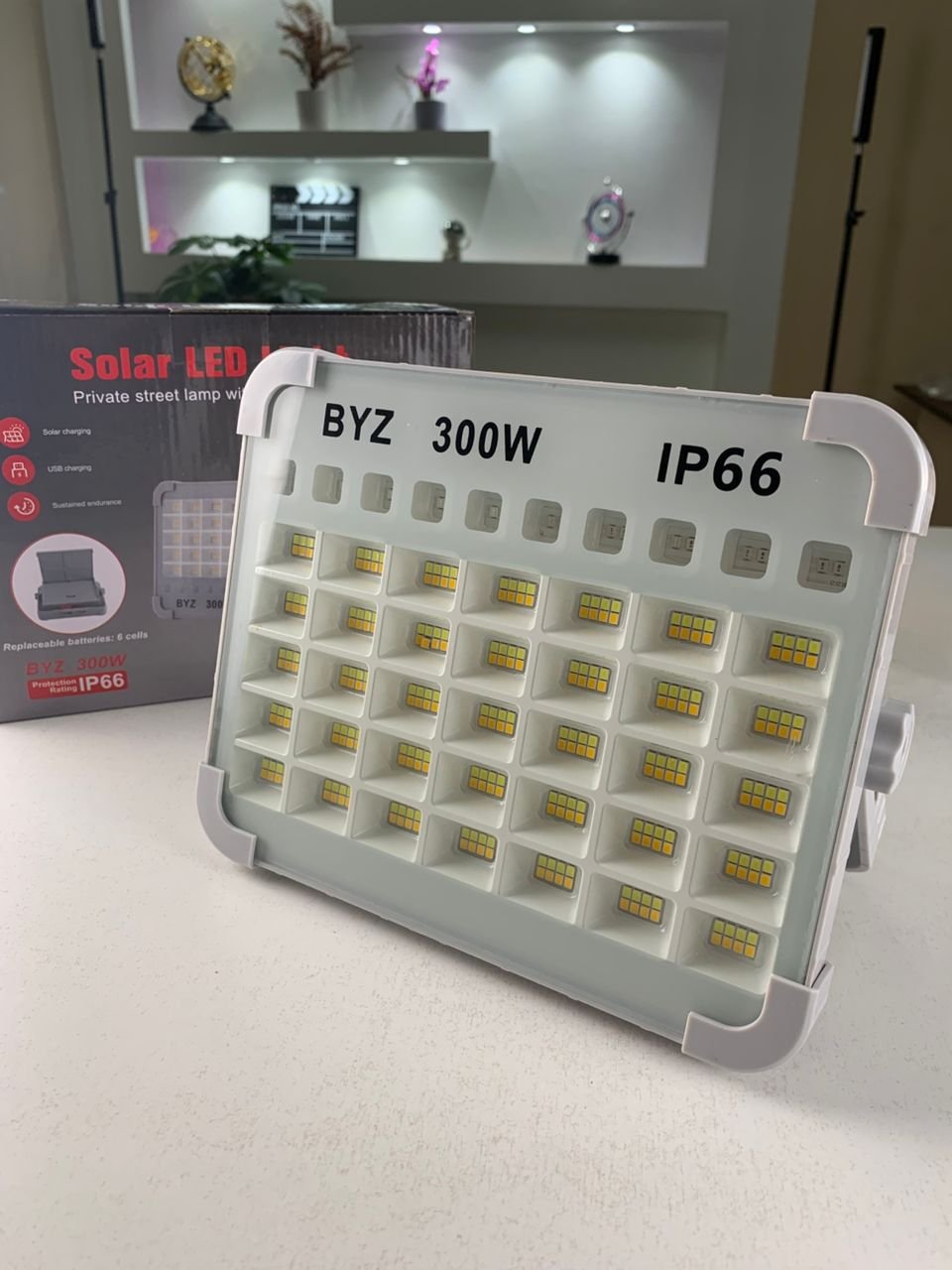 🔦 كشاف طاقة شمسية متعدد الاستخدامات – إضاءة قوية في أي وقت وأي مكان!سواء كنت تخيم في الطبيعة، تصلّح سيارتك ليلاً، أو تواجه انقطاعًا مفاجئًا في الكهرباء، فإن هذا الكشاف القابل لإعادة الشحن هو شريكك المثالي في جميع الظروف.✅ أهم المميزات:🔋 بطارية قوية وشحن مزدوج يأتي الكشاف مزودًا ببطارية بسعة 26000mAh، تُشحن عبر USB سريع (6-8 ساعات) أو بالطاقة الشمسية (في غضون 48 ساعة من التعرض للشمس). يوفر إضاءة تدوم حتى 26 ساعة بنسبة سطوع 50% أو 15 ساعة بكامل السطوع.💡 إضاءة LED فاخرة يحتوي على 84 لمبة LED مطورة توفّر إضاءة قوية تصل إلى 26000 لومن، مع 5 أوضاع تشغيل:إضاءة بيضاءإضاءة دافئةسطوع 100%سطوع 50%وضع الطوارئ (SOS)📟 شاشة ذكية لعرض نسبة الشحن شاشة مدمجة تُظهر نسبة البطارية من 25% إلى 100% لمراقبة الطاقة بسهولة.🧲 مرونة في التثبيت والاستخدام مزود بـ: ✔ قاعدة قابلة للدوران حتى 180° ✔ خطّافات للتعليق داخل الخيام ✔ مغناطيس قوي لتثبيته على الأسطح المعدنية ✔ مثالي للتخييم، الشواء، صيد الأسماك، أو الطوارئ.💪 تصميم مقاوم للماء والصدمات مصنوع من مادة ABS الصناعية، مقاوم للمطر، الغبار، ودرجات الحرارة القاسية، بتصنيف مقاومة الماء IP66، مثالي للاستخدام الخارجي والمهني.🔌 مصدر طاقة إضافي يمكن استخدامه كبنك طاقة لشحن هاتفك أو أجهزتك الإلكترونية في أي وقت.📦 محتويات العلبة:كشاف LED قابل لإعادة الشحنكابل USBدليل الاستخدام⚙️ المواصفات التقنية:القوة: 300 واطالحجم: 230×60×180 ملمالوزن: 1 كغالجهد: 3.7 فولتاللون: أبيضعدد المصابيح: 84نوع الاستخدام: خارجي