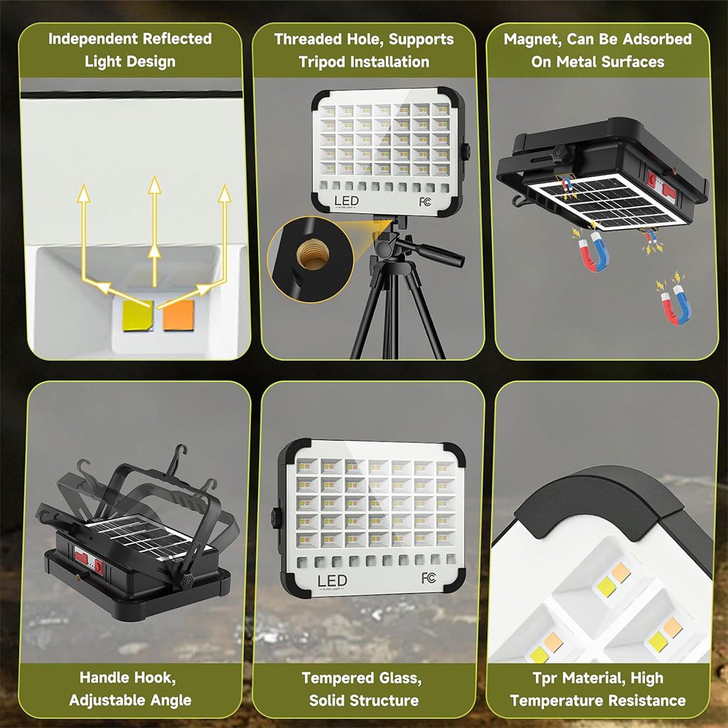 Lampe Solaire Rechargeable LED 300 W Portable et Magnétique 26000LM – مصباح محمول قابل للشحن بالطاقة الشمسية