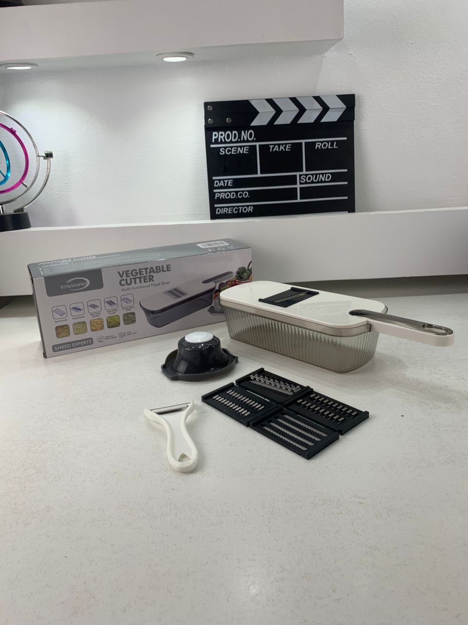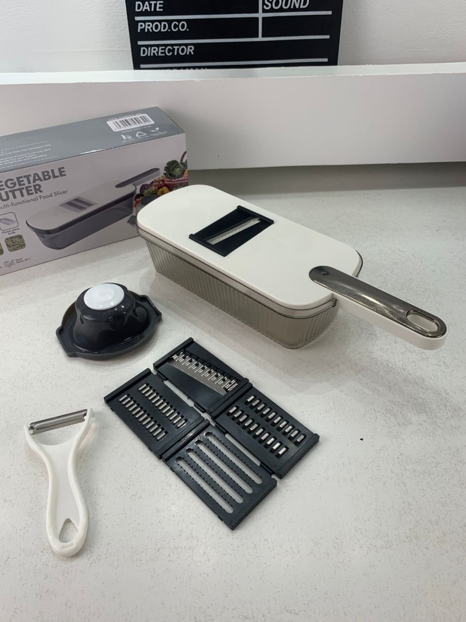 Mandoline à légumes professionnelle avec 5 lames et récipient – قطاعة خضر في المطبخ