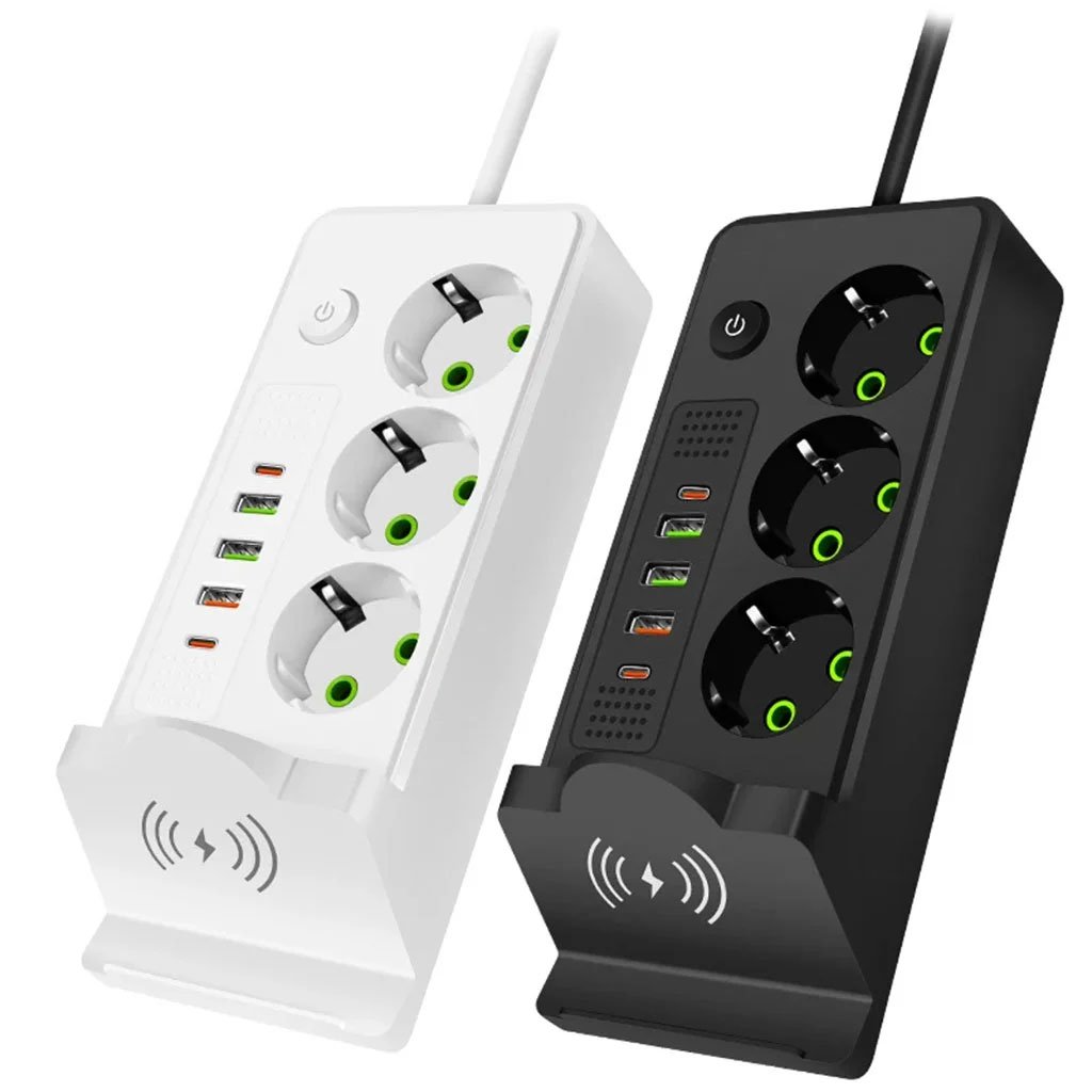Multiprise 3 SOCKET 2500W avec USB, Type-C et chargement sans fil – مقبس طاقة وشاحن لاسلكي