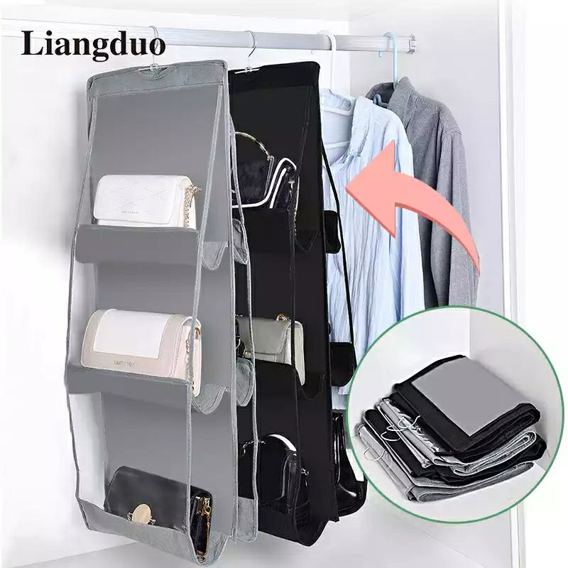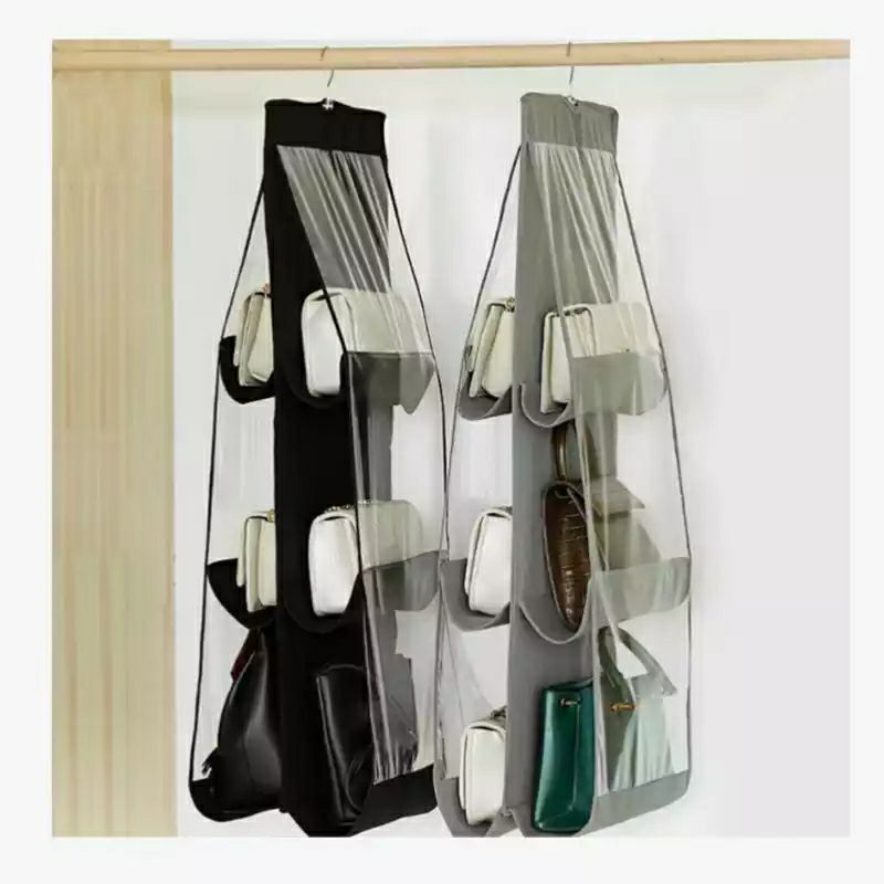 منظم الحقائب اليدويةإذا كنت من محبي جمع الحقائب، فهذا المنظم هو ما تحتاجه.نظام عملي يتيح لك ترتيب وحماية 6 حقائب (أو أحذية) في خزانة الملابس أو حتى خلف الباب.الجيوب المنفصلة تساعدك على إيجاد حقيبتك المفضلة بسرعة.مناسب لجميع أنواع الحقائب سواء كانت جلدية أو كروس أو ماركات عالمية..