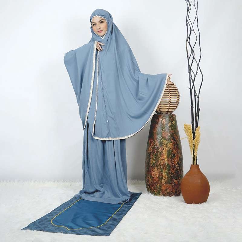 PACK طقم صلاة نسائي 4 قطع برداء فضفاض وسجادة مبطنة مع غلاف للمصحف + جهاز تسبيح رقمي محمول، سبحة صلاة مع عداد رقمي
