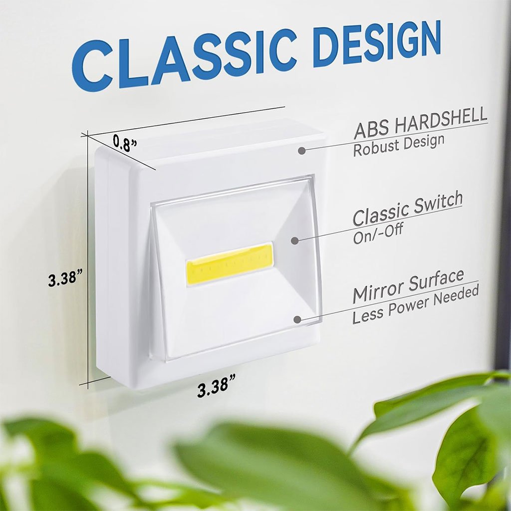 إضاءة قوية للخزائن – كل مصباح مجهز بشريط LED COB عالي الجودة بقدرة إضاءة 200 لومن، يمنحك رؤية واضحة في الليل أو الأماكن المظلمة. إضاءة لاسلكية – تعمل بالبطاريات (3 بطاريات AAA غير مشمولة)، دون الحاجة لأسلاك أو كهرباء، مثالية لغرف الأطفال. تركيب سهل – باستخدام شريط لاصق مزدوج أو مسمار تثبيت، تلتصق بثبات دون أن تسقط. متعددة الاستخدام – مثالية لخزائن المطبخ، الدواليب، الأدراج، غرف النوم، الغسيل، الكراج، المعسكرات، والمزيد.