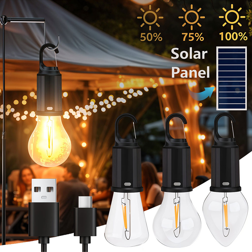 Pack X2 Lampe de Camping Solaire étanche et Rechargeable 3 modes d’éclairage T01-B – مصباح محمول بالطاقة الشمسية